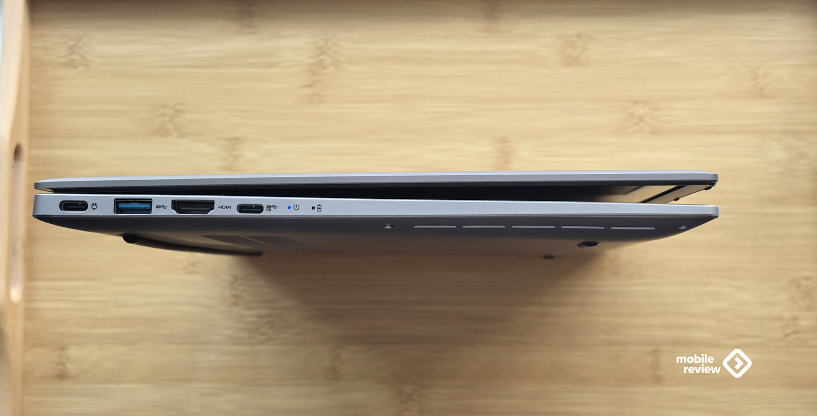 С левой стороны — два порта Type -C, один из которых предназначен для питания, а ещё HDMI и классический USB Type-A.