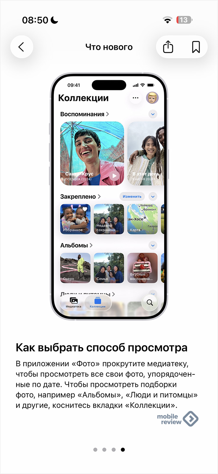 Все системные приложения были переработаны под новый дизайн, в том числе постарались поменять логику их работы (не везде, но во многих местах). Порой это изменения ради изменений. В разделе «Фото» эти изменения хорошо видны.