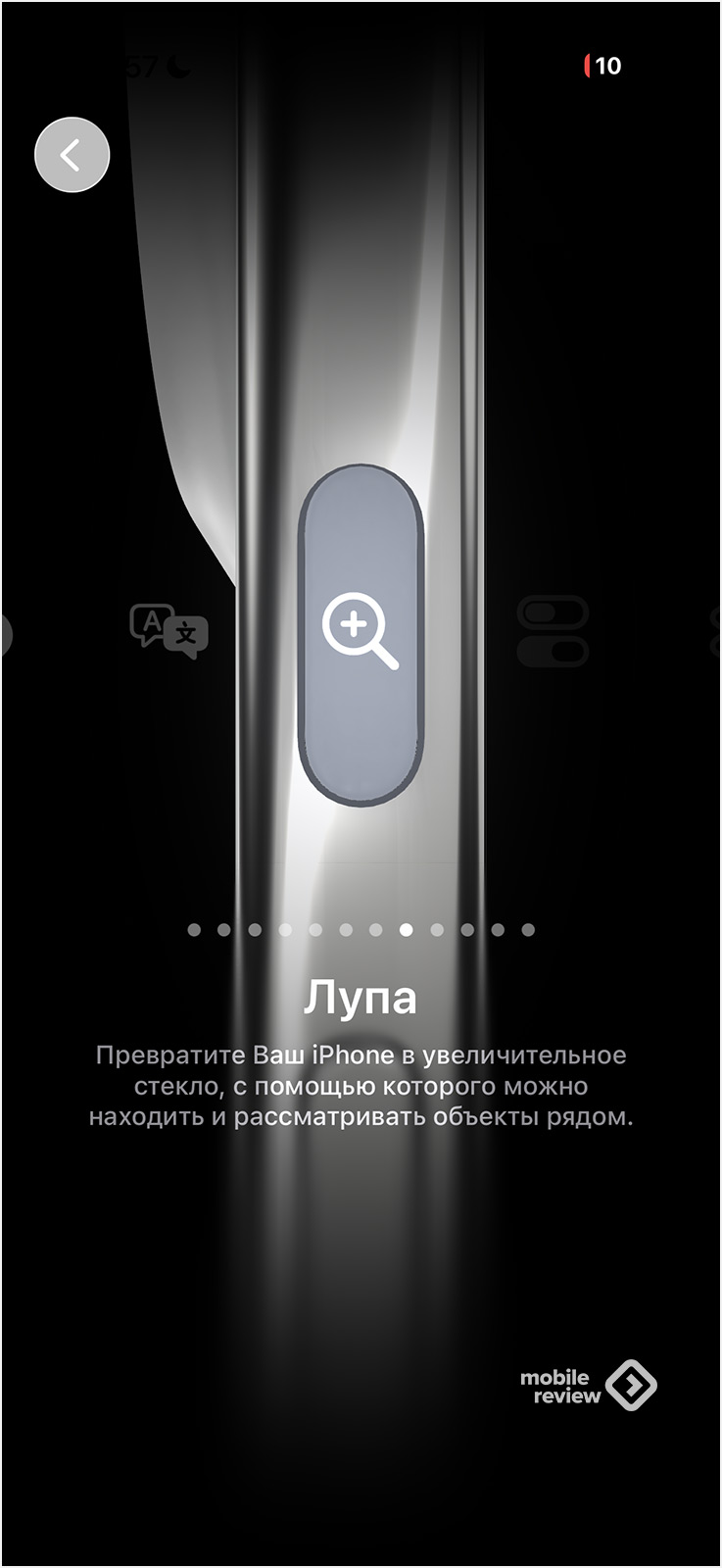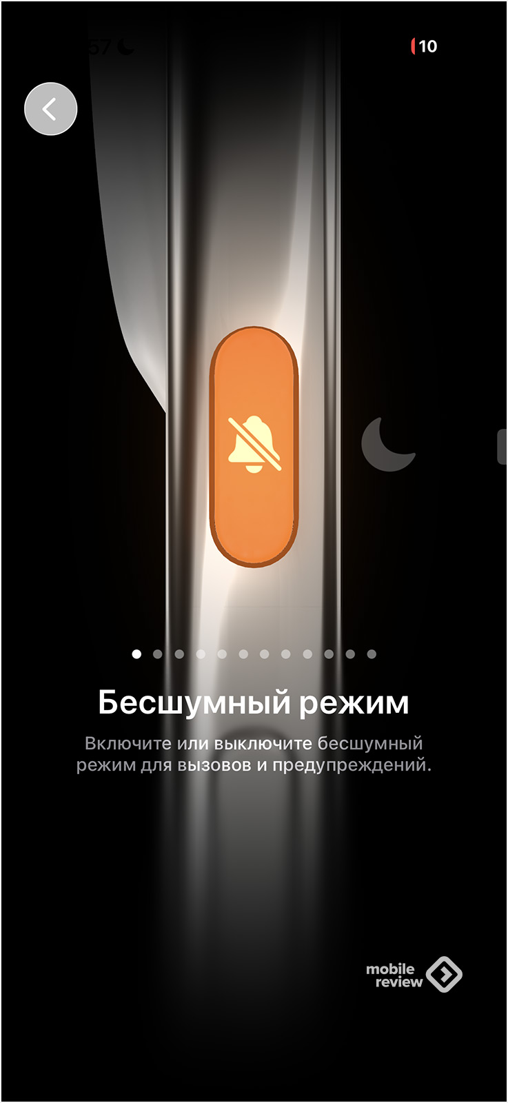 И тут все привычно, также никаких изменений нет. Но давайте попробуем нажать на пункт «Кнопка действия». И перед нами открываются анимационные странички, которые знакомят с возможностями этой клавиши. Они появились вместе с клавишей на предыдущих iPhone, фактически это некие советы, что именно вы можете сделать с клавишей.