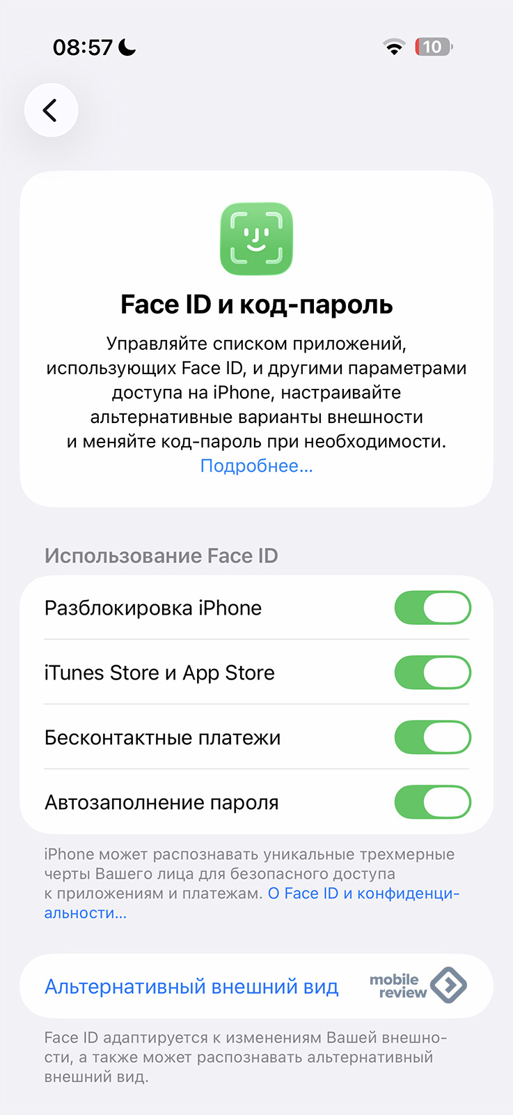 При удержании пальца на иконке приложения вы увидите быстрый список команд, можно что-то сделать. Также можно поменять размер иконки, де-факто превратить ее в виджет (почти для всех стандартных приложений). Из действительно полезного есть возможность назначить дополнительную проверку FaceID для запуска конкретного приложения. Например, вы можете таким образом закрыть календарь, телефон и так далее.