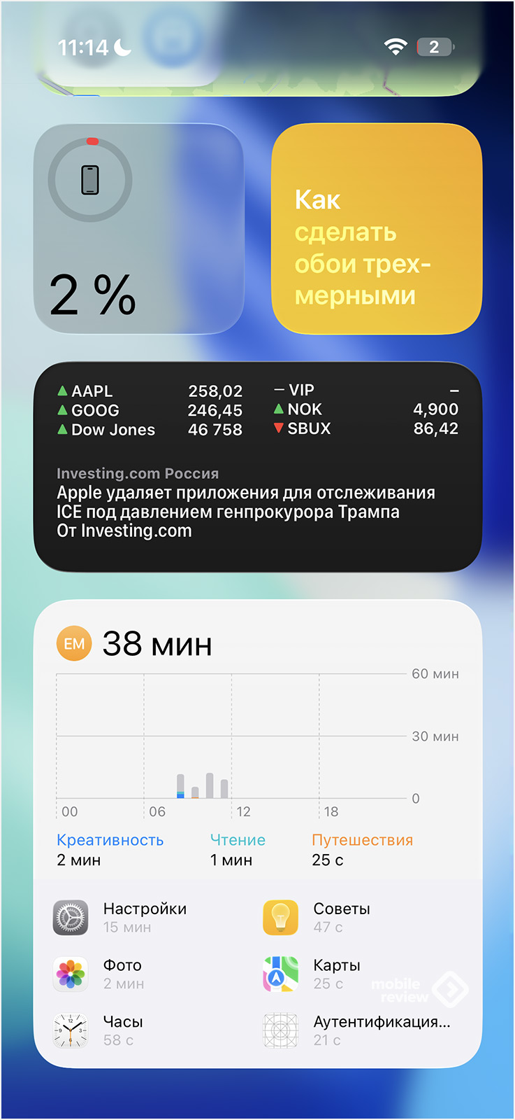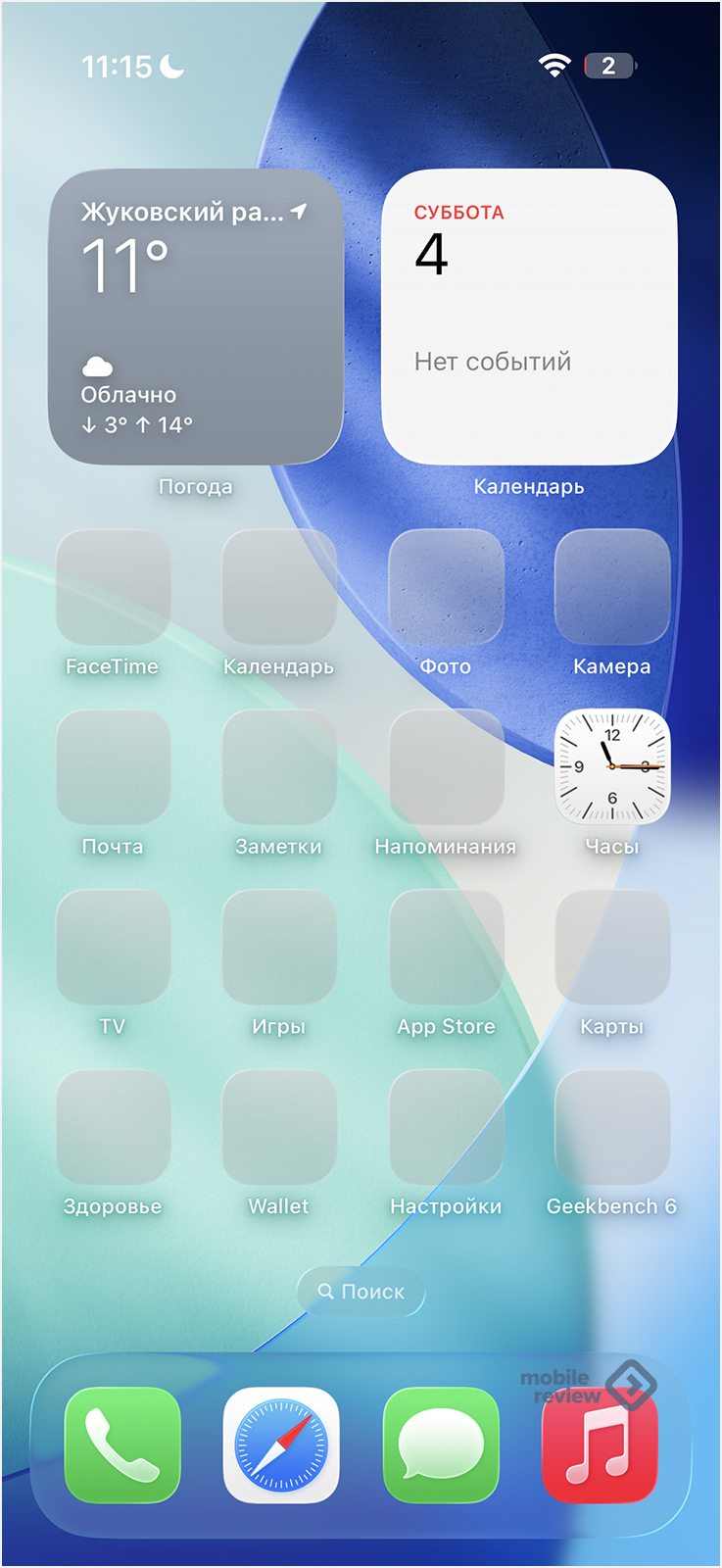 По умолчанию главный экран iOS 26 предлагает вам набор стандартных иконок приложений плюс несколько виджетов, что знакомят вас с их возможностями.