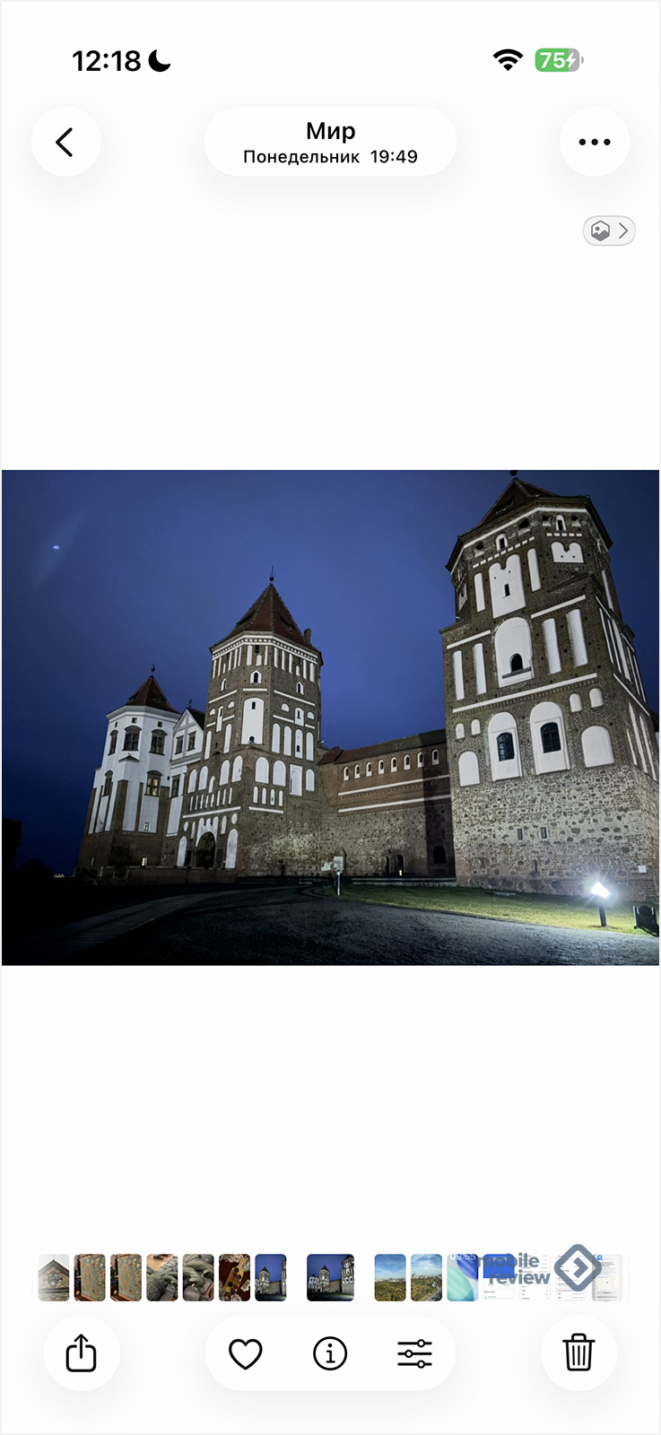 К сожалению, визуальный поиск — это боль. Начну с того, что он находит на фотографиях надписи, которых там не существует. Посмотрите на снимок Мирского замка, а также на то, какие языки определило устройство от Apple на снимке. При визуальном поиске по картинке в Google также выдается полная чепуха.