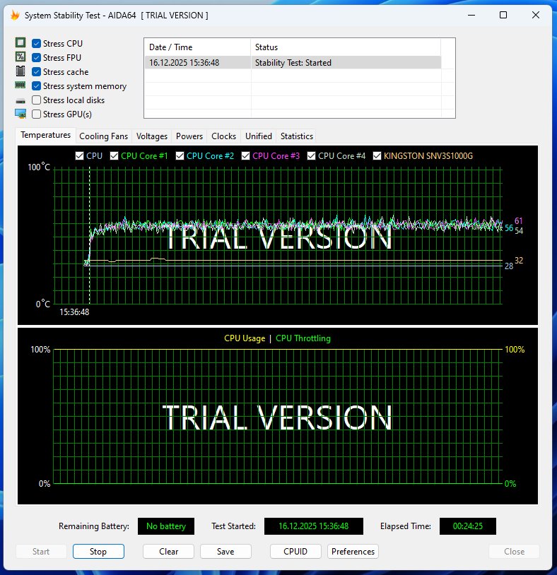 Сразу хочется похвалить охлаждение. Система охлаждения создает негромкий низкочастотный шум, который не вызывает раздражения. Работает охлаждение отменно: даже во время тяжелых стресс-тестов температура процессора не превышала 35 градусов, а температура отдельных ядер — 60 градусов. Так что система демонстрировала нулевой уровень троттлинга. В комнате была температура 24 градуса.