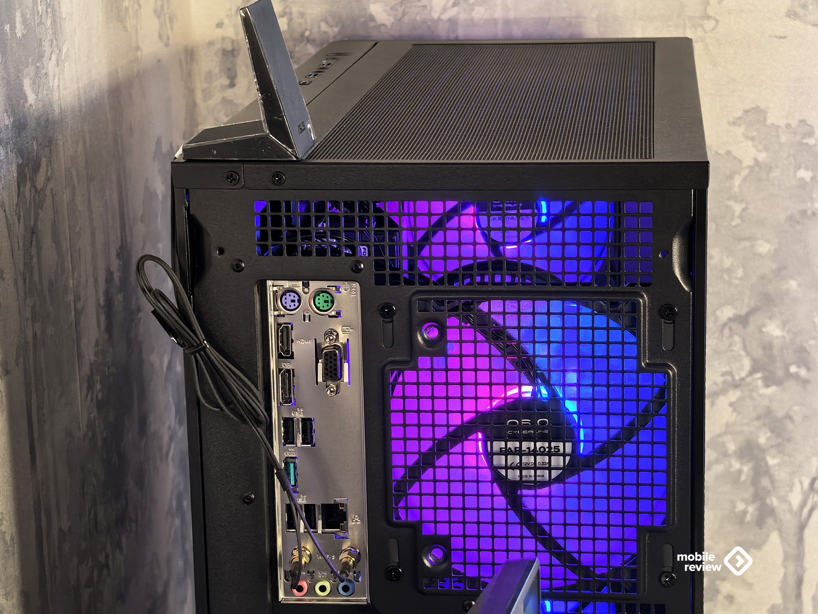 Если искать минусы, то, пожалуй, можно сказать, что с такой красочной подсветкой ПК явно должен стоять на виду. Однако корпус большой, поэтому, скорее всего, пользователь поставит компьютер под стол. На это намекает и расположение портов на верхней панели. А если системный блок будет стоять под столом, то не получится любоваться подсветкой.