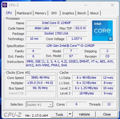 Над процессором построили мощную систему охлаждения. Она крепится на 4 винтах, так что снять её будет относительно просто. А снять вы её, возможно, со временем захотите. Из коробки ПК получил процессор Intel Core i5-12400F (6 ядер / 12 потоков).