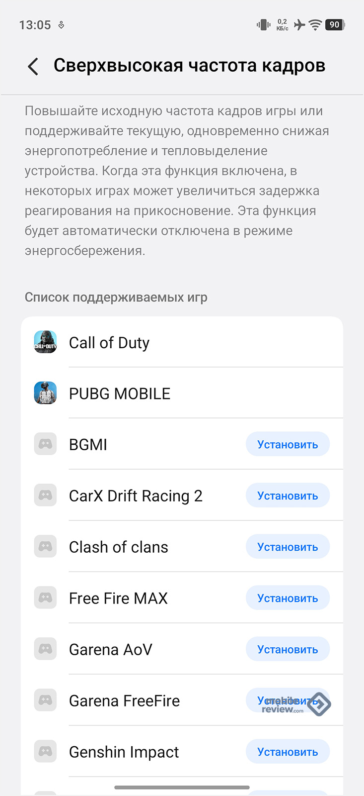 Ещё в смартфоне есть игровой чип Q2, который отвечает за повышенное разрешение высокого качества. По сути, это чипсет для DLSS, как на видеокартах Nvidia. Все настройки находятся в меню «Ультраигровой режим». Там есть перечень игр, которые поддерживают сверхвысокое разрешение и частоту кадров. Инженеры iQOO проделали хорошую работу — тут есть все основные игры: PUBG, Call of Duty, Genshin Impact, Free Fire, League of Legends и так далее.