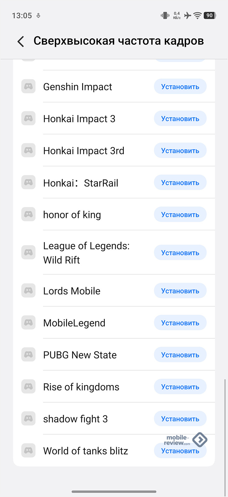 - Частота обновления 144 Гц. Это опция для игр. К сожалению, игр, которые поддерживают такое число кадров в секунду, по-прежнему мало, но запас прочности на будущее есть. В обычных задачах смартфон держит частоту 120 Гц, снижая её до 90 Гц при просмотре картинок и до 60 Гц во время простоя. Интересно, что даже в режиме Always-On частота обновления составляет 120 Гц.