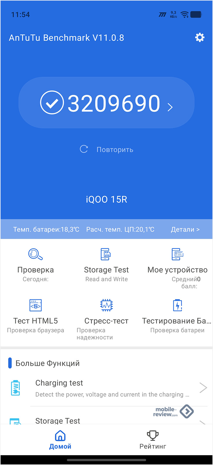 - AnTuTu v11 — 3 258 020 баллов