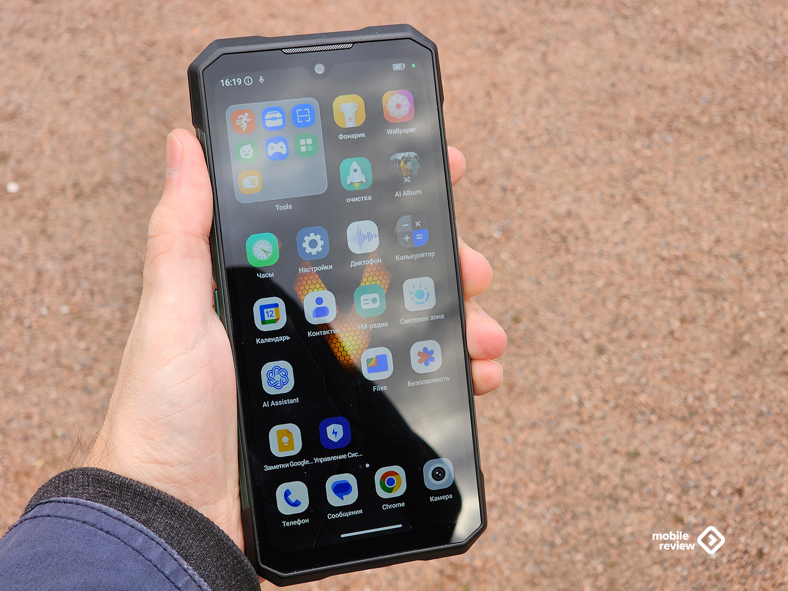 - Разъемы под заглушками, есть защита IP69K. Воды не боится. С падениями сложнее. Корпус точно выдержит, а вот экран тут Corning Gorilla Glass. Так что как повезет.