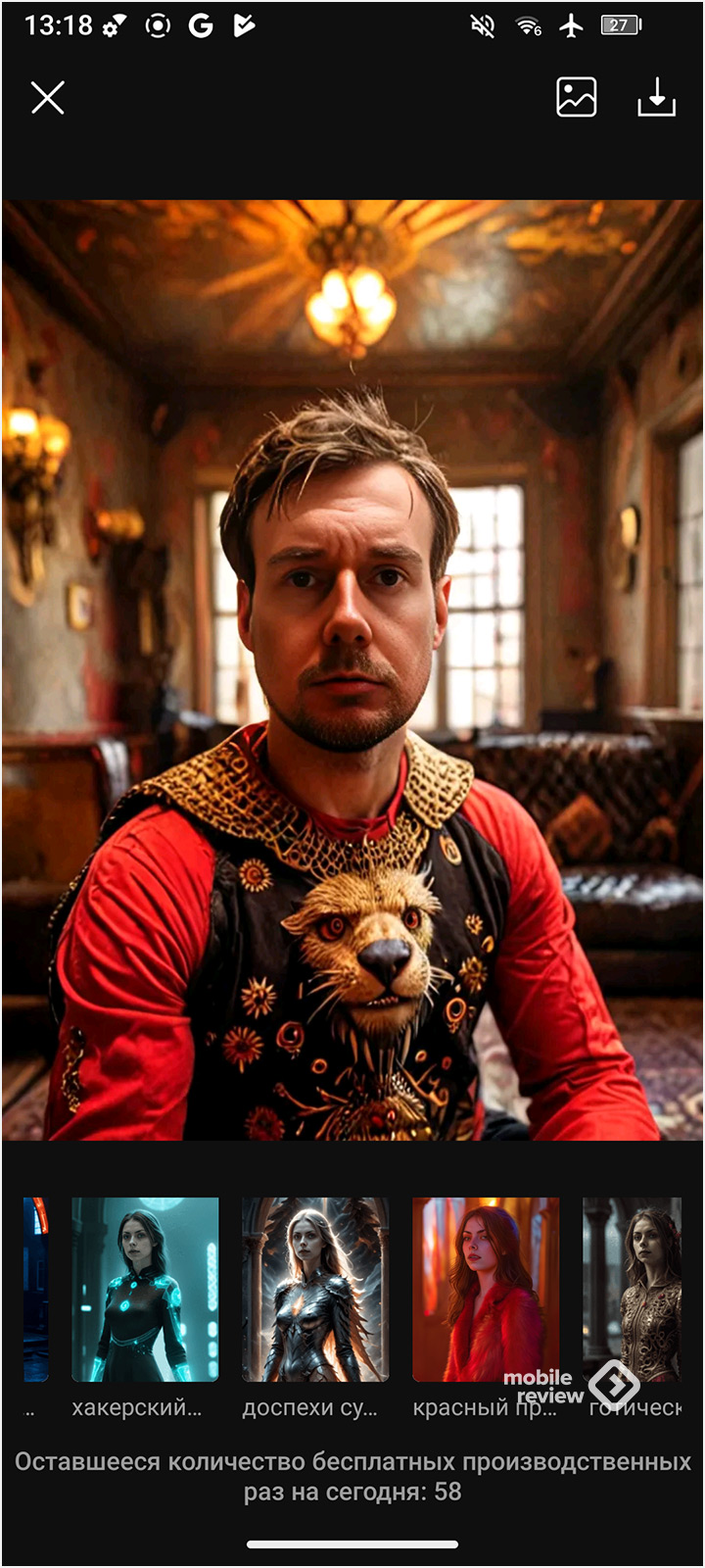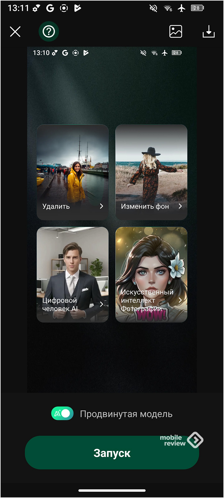 В смартфоне есть ИИ для обработки фотографий. Лучше всего у него получается удалять объекты с фото. Все остальные опции – замена фона, оживление фото — скорее смеха ради.