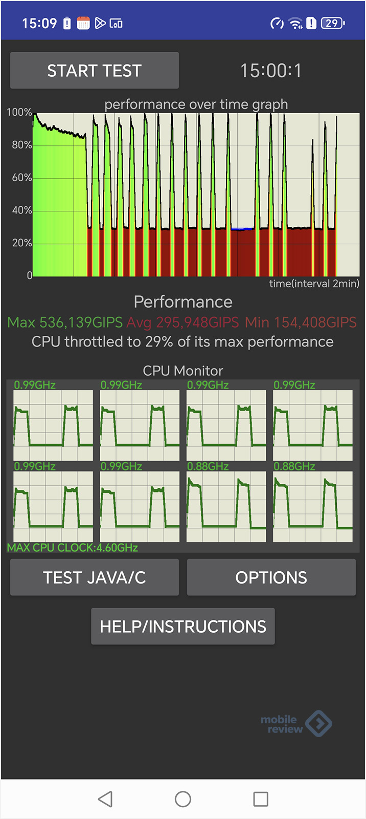 Вы видите, что цифры в синтетических тестах кардинально разные. На практике это не значит практически ничего, производительность аппарата в сбалансированном режиме более чем достаточная, нет никаких притормаживаний. Включаете максимальные возможности и получаете кучу проблем, смотрим на тротлинг.