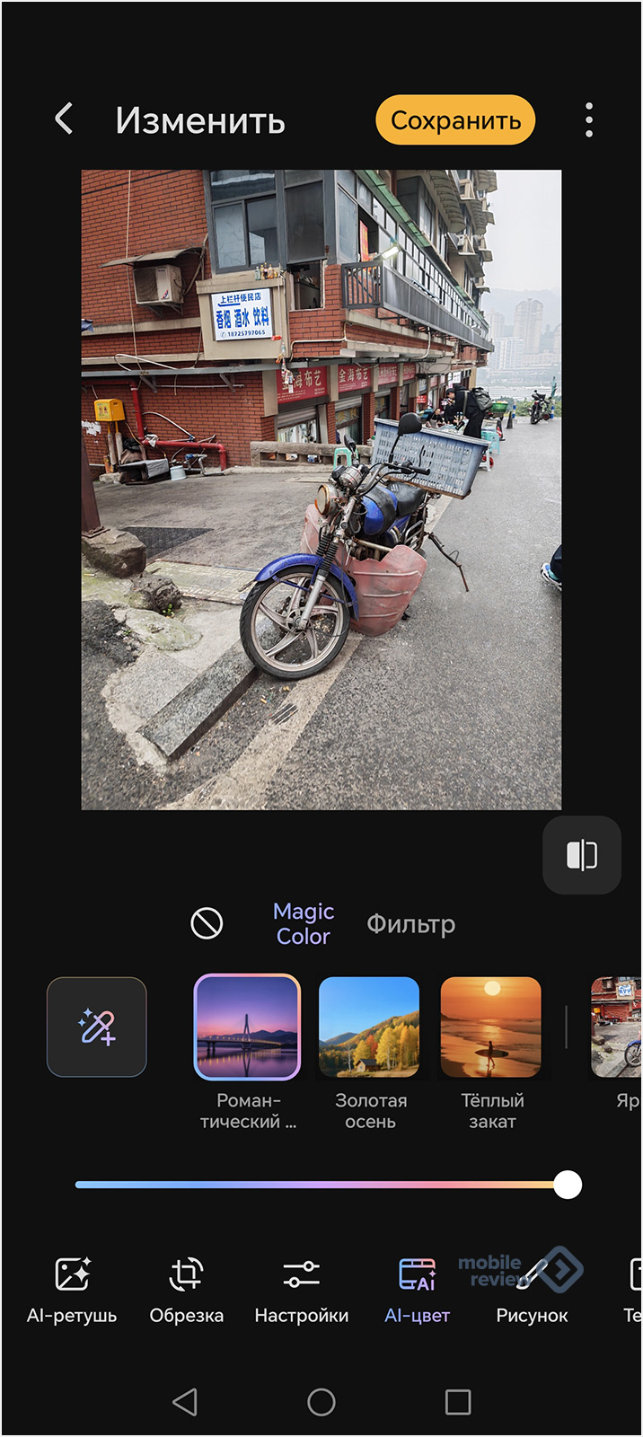В Honor продолжают дорабатывать алгоритмы для модулей камер, которые используются уже несколько лет. Инновация этого года в том, что в основном модуле отказались от переменной диафрагмы (дорого, модуль удешевили), усилили алгоритмы AI, что порой приводит к катастрофическим результатам. Производитель при этом продвигает аппарат как умелый в ночное время суток. Напомню, что в прошлом году упор был сделан на серийную съемку (скоростную), тут она никуда не исчезла, но ее вовсе не подсвечивают, и думаю, что многие просто не найдут соответствующие настройки. Увы.