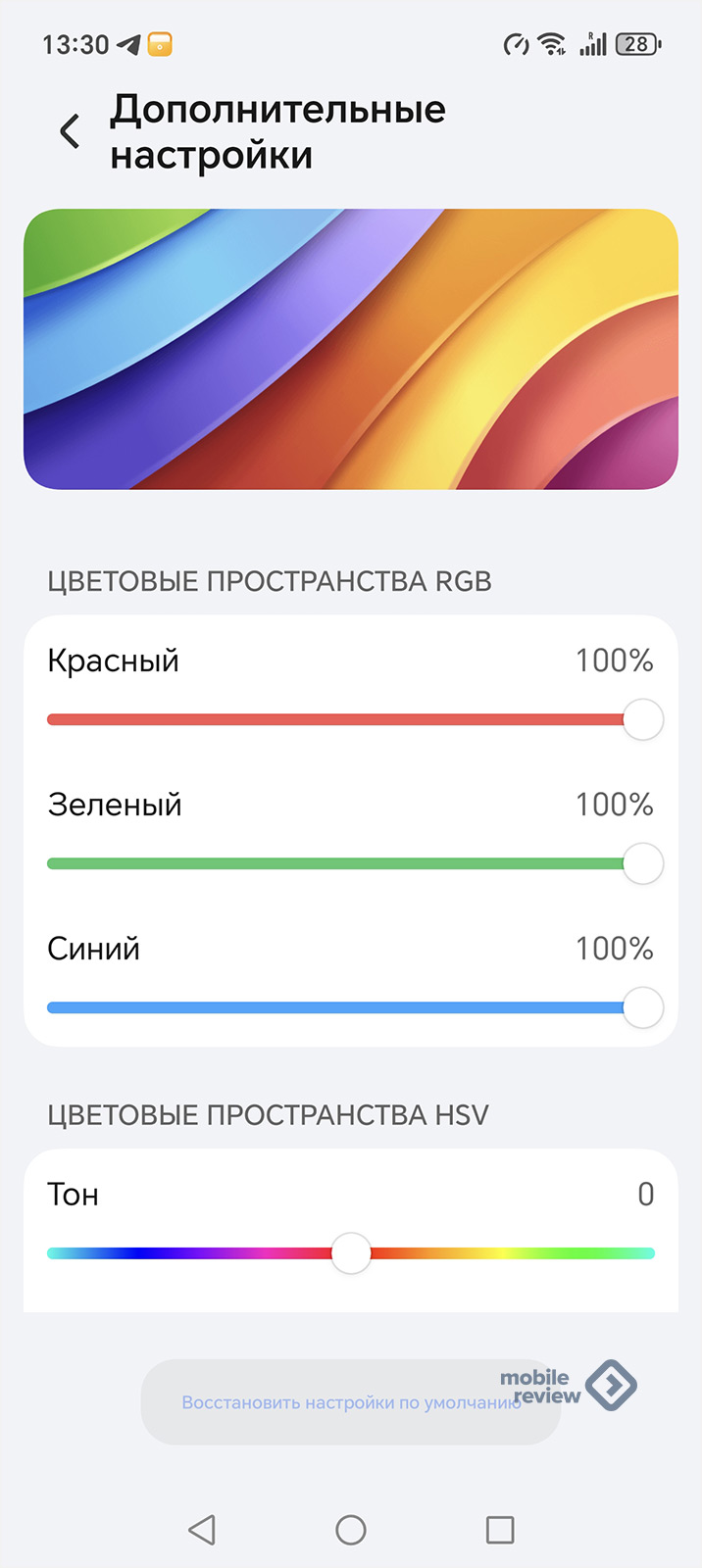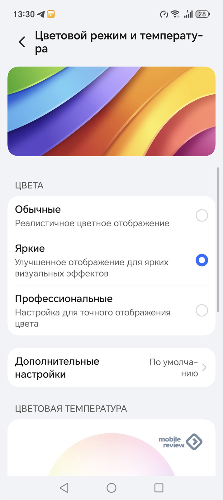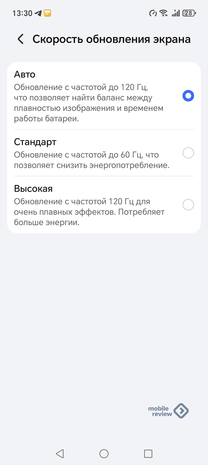 Другие настройки типичны: выбор цветовой температуры, разрешения экрана (по умолчанию стоит «умное», подстраивается в зависимости от контента), частоты экрана (60, 120 Гц или автомат).
