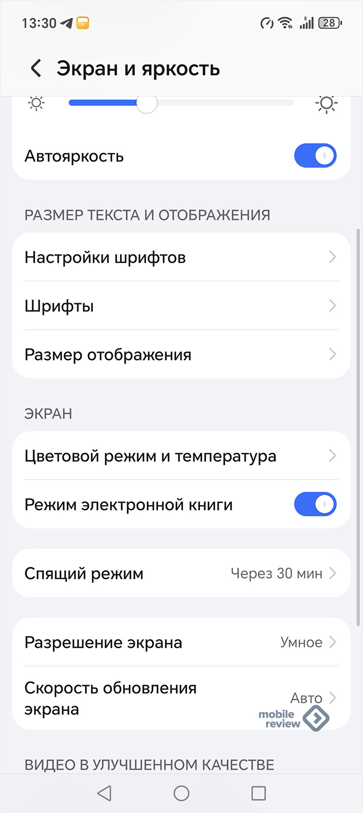 Напомню технические характеристики экрана: 6.71 дюйма, QHD (20:9), 1256х2808 точек, OLED, LTPO, автоматическая регулировка яркости, AlwaysOn Display, HONOR NanoCrystal Shield, HDR10+, 1-120 Гц, 458 ppi, 1800 нит (пиковая яркость 6000 нит), ШИМ-затемнение 4320 Гц, частота дискретизации 300 Гц.