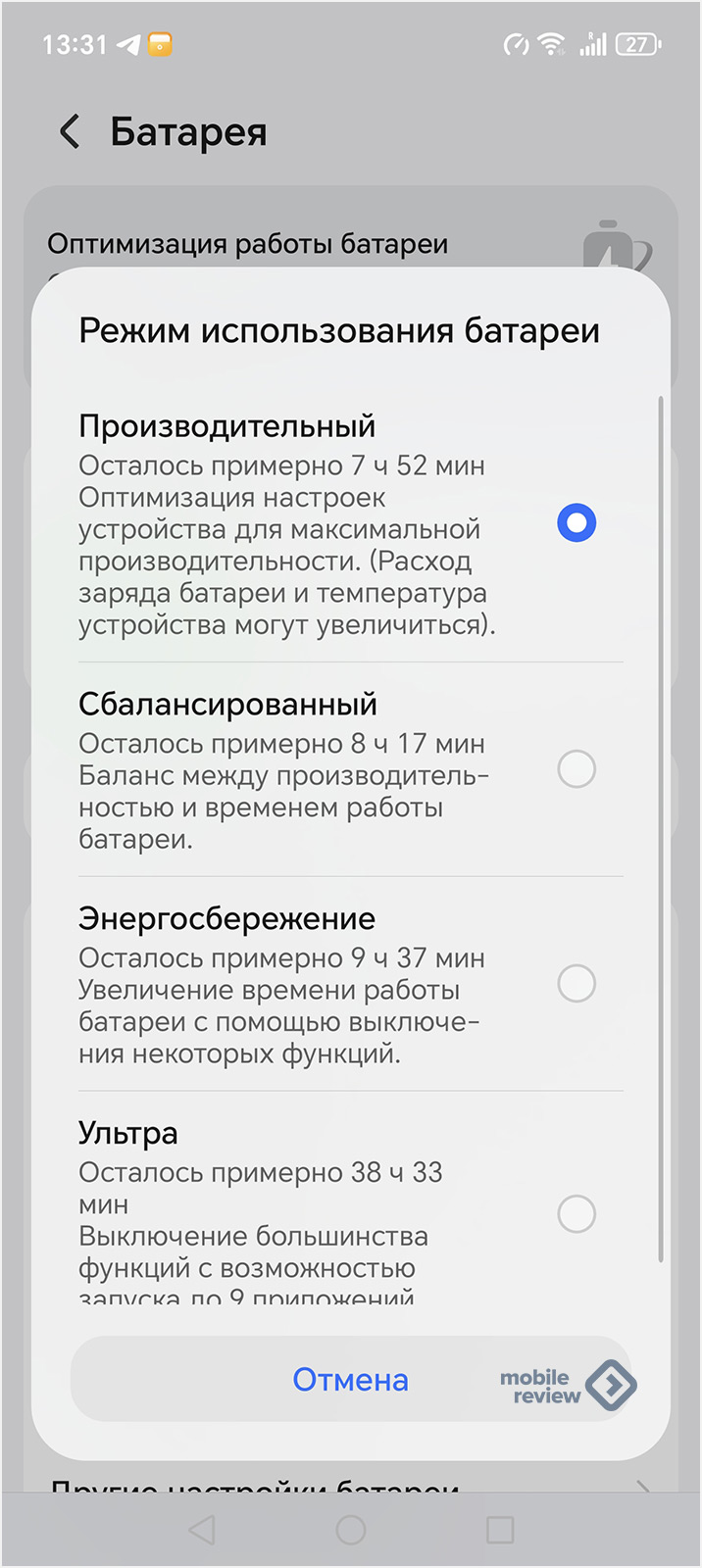 Отмечу, что все эти цифры относятся к режиму работы «Сбалансированный», выберете производительный, и все изменится в худшую сторону, аппарат будет греться, включится тротлинг, об этом чуть позже.