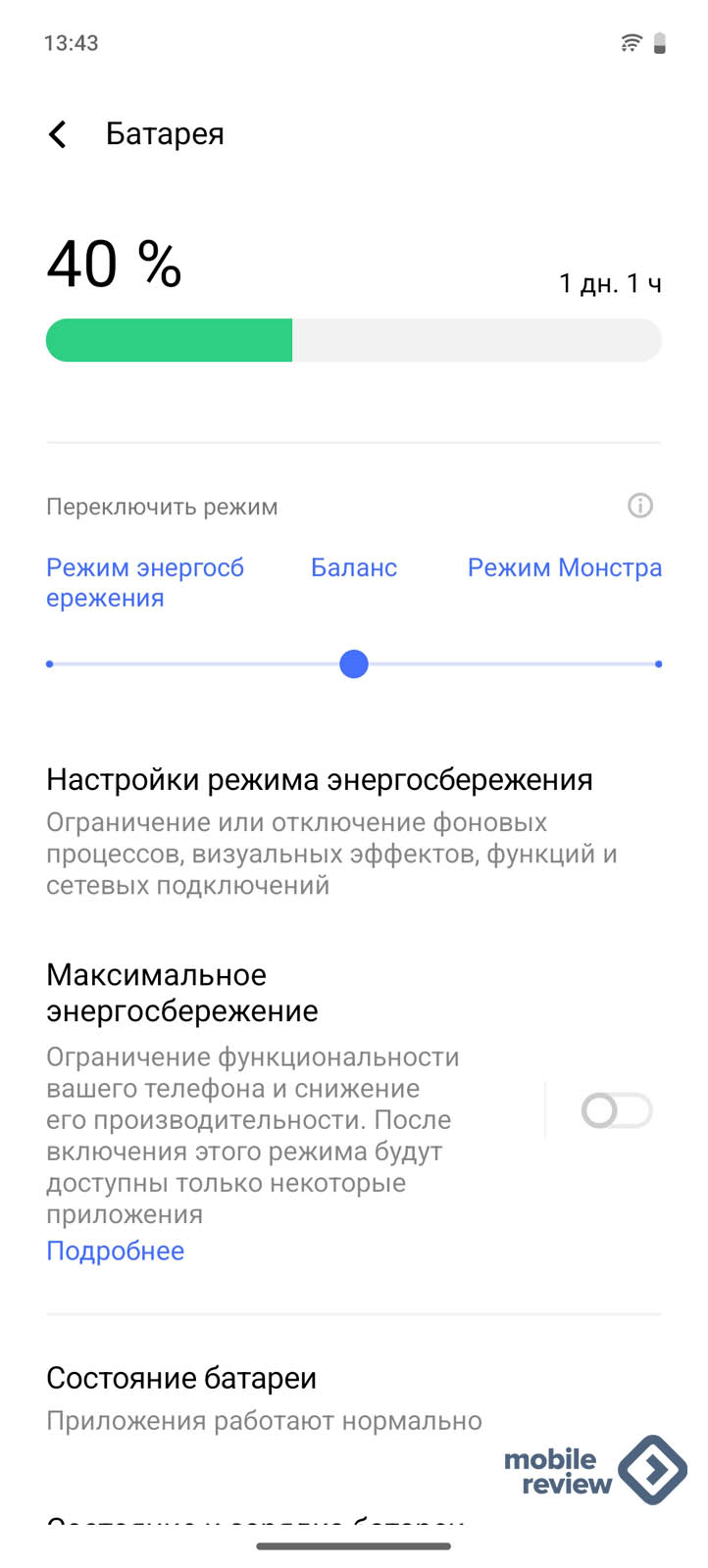 Зарядка с помощью FlashCharge мощностью 90 Вт занимает минимум времени: с 1% до 50% всего 15 минут, а до 100% — 52 минуты.
