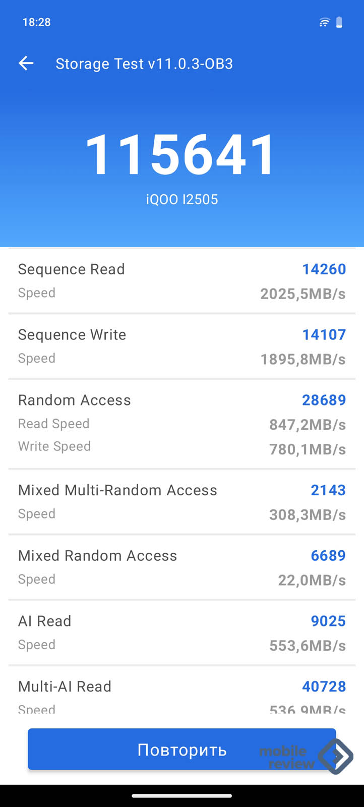 Оперативка здесь LPDDR4X, накопитель UFS 3.1, и я лично проверял вариант 12/512 ГБ — скорости радуют: около 2000 МБ/с на чтение и 1900 МБ/с на запись, что для среднего сегмента более чем достойно.