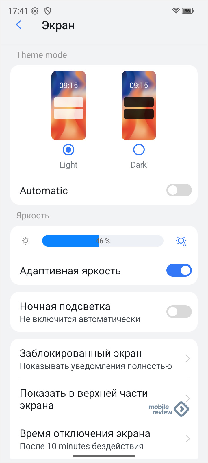 В верхней части передней панели — речевой динамик. Он громкий и звучит довольно чисто, хотя, как мне кажется, основное внимание тут на средние и высокие частоты. Басов, конечно, нет, но для разговоров и уведомлений — самое то. Рядом с ним разместились датчики освещения и приближения. Последний работает без нареканий, а вот регулировка яркости, на мой взгляд, могла бы быть чуть мягче — сейчас она довольно резкая. Заходите в темное помещение — экран сразу тускнеет, выходите на солнце — моментально ослепляет. Думаю, производителю стоило бы добавить немного плавности в алгоритмы автояркости.