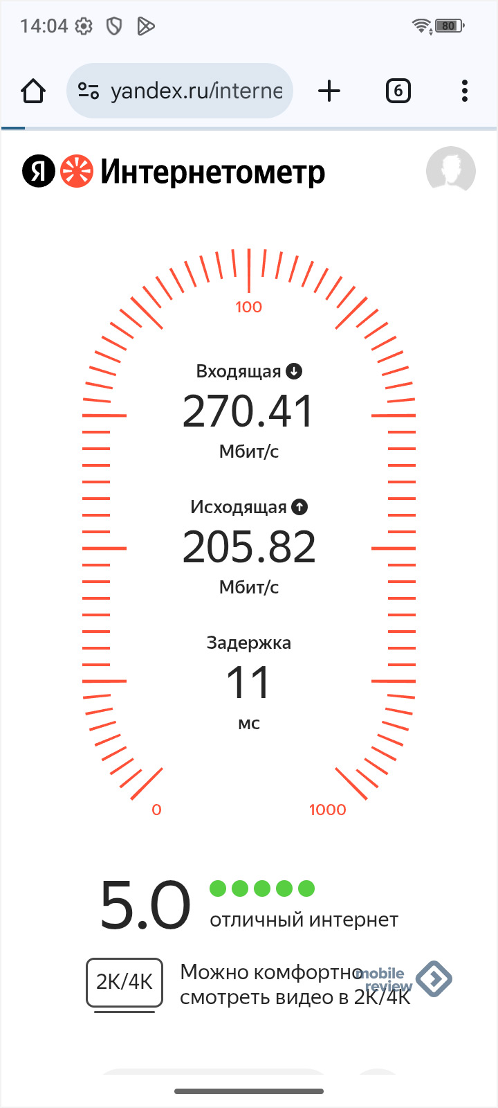 По Wi-Fi результаты привычные: примерно 300 Мбит/с на прием и 200 Мбит/с на отдачу. Для повседневного использования этого более чем достаточно.