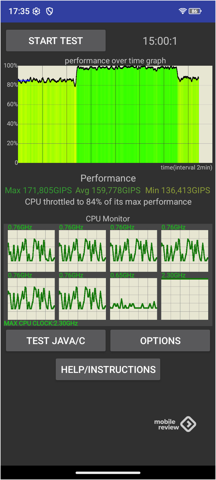 Троттлинг у аппарата почти идеальный: даже при долгой нагрузке процессор теряет максимум 15% производительности. Корпус и внутренние компоненты остаются холодными, нагрев минимальный. Даже когда я запускал тяжелый тест Antutu, температура поднялась всего на пару процентов.