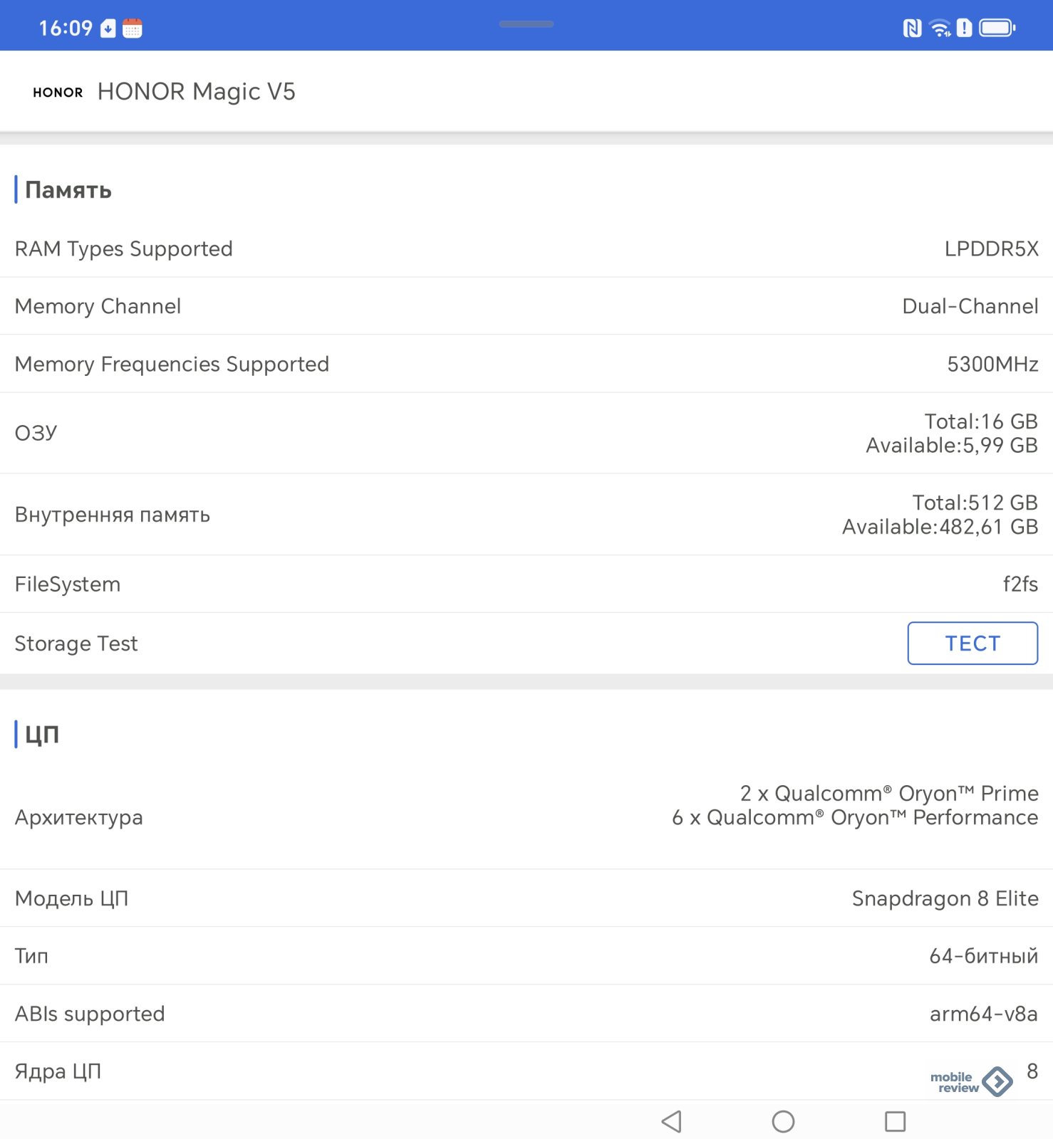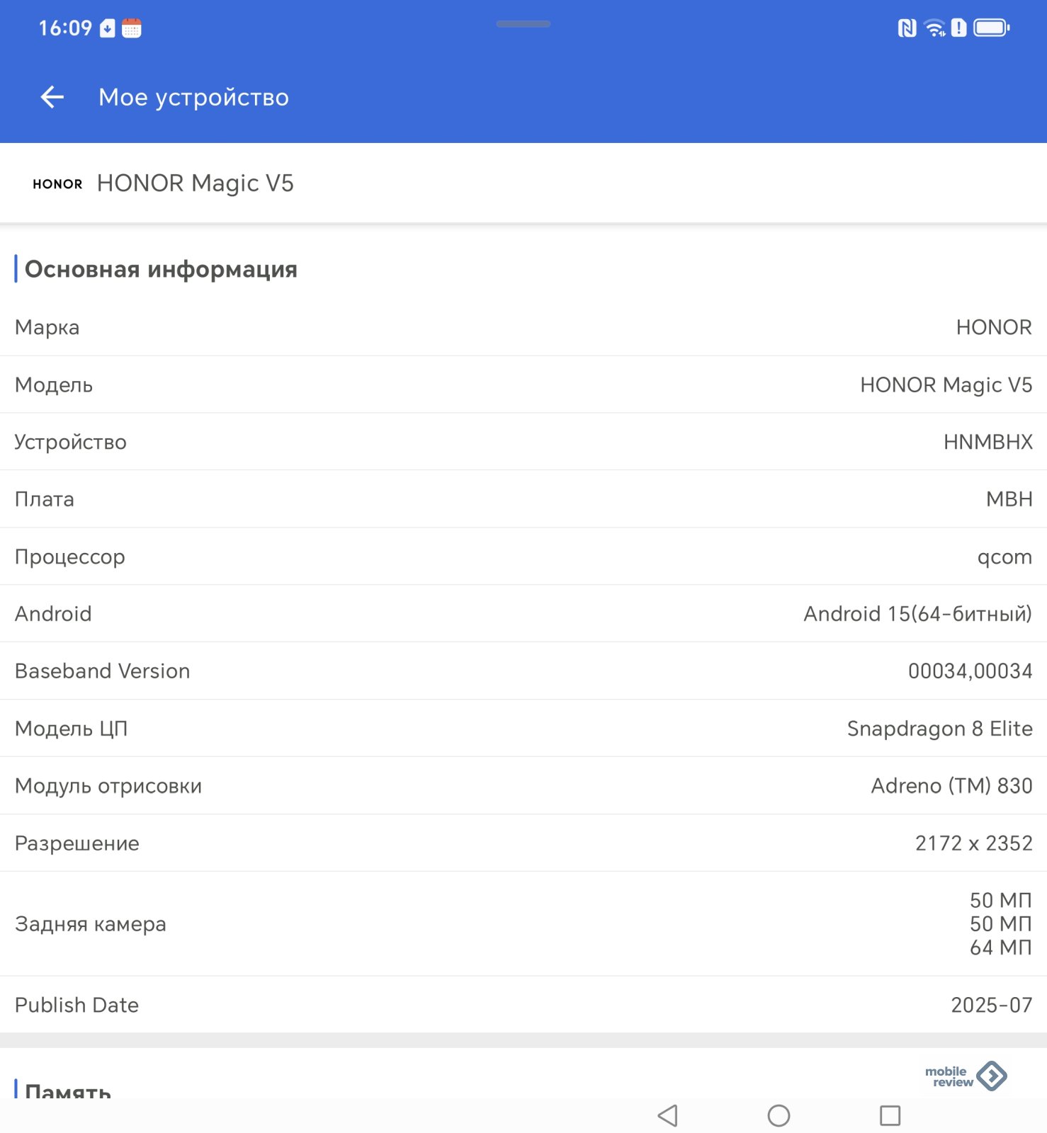 У нас был слепой тест основных камер устройств форм-фактора Fold, в нем Magic V5 занял второе место после Mate X6, обогнав Fold7.