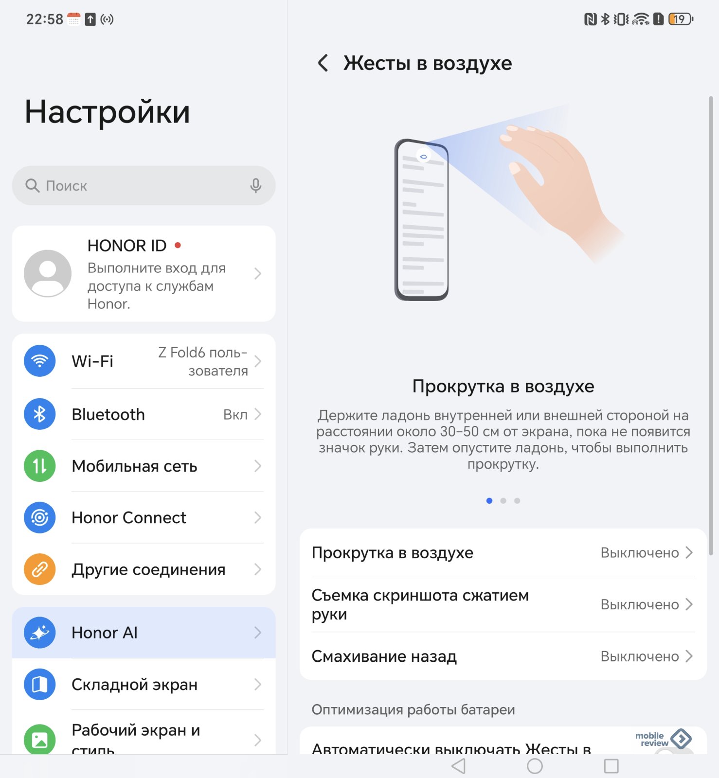 Начну с того, что в аппарате стоит Android 15 и MagicOS 9.0.1, в Honor постепенно улучшают софт в своих моделях, делают его интереснее. Но тут пространство для улучшений все еще остается, догонять ту же Samsung долго.
