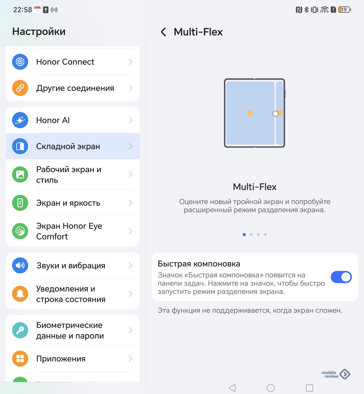 Большой экран дает возможность изменить меню настроек, открывать приложения в нескольких окошках, в том числе плавающих.