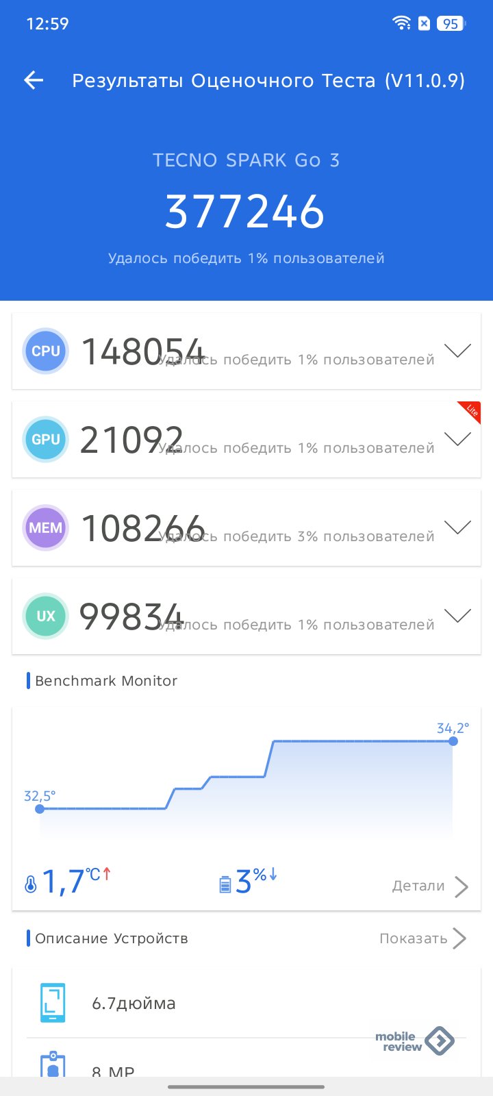 Смартфон работает неплохо: все менюшки листаются плавно, явных зависаний и лагов нет. Разумеется, если возьмете TECNO SPARK Go 3 после флагманского смартфона, вам покажется, что приложения открываются долго. Но это субъективное ощущение. Объективно TECNO провели отличную работу по оптимизации интерфейса. Это особенно заметно при листании экранов интерфейса и настроек меню.