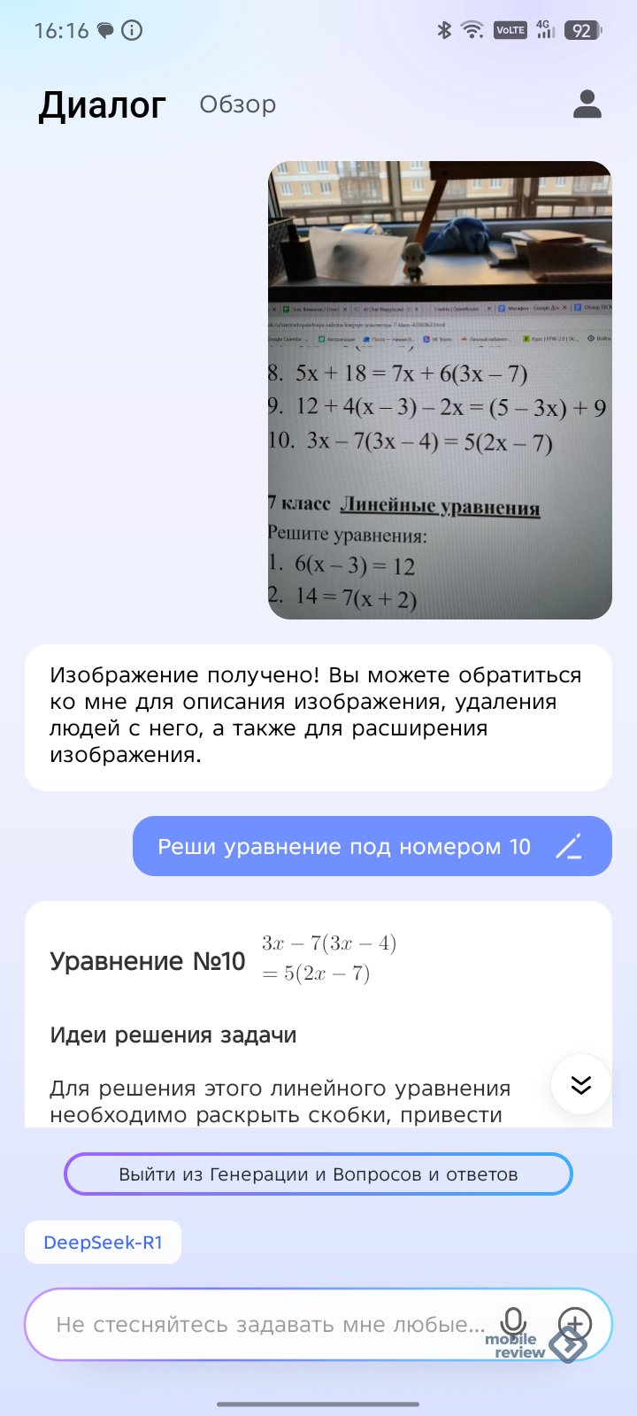 Ещё можно сфотографировать задачу, и Ella её решит. Причем ассистент весьма умный. Так, обратите внимание, что на фото ниже несколько уравнений, но Ella поняла запрос.