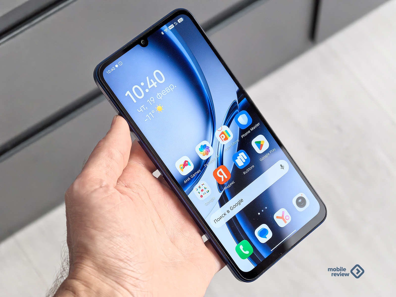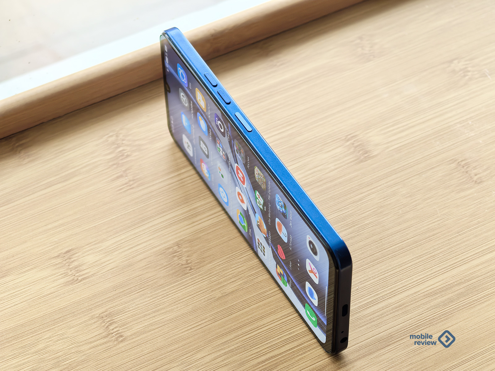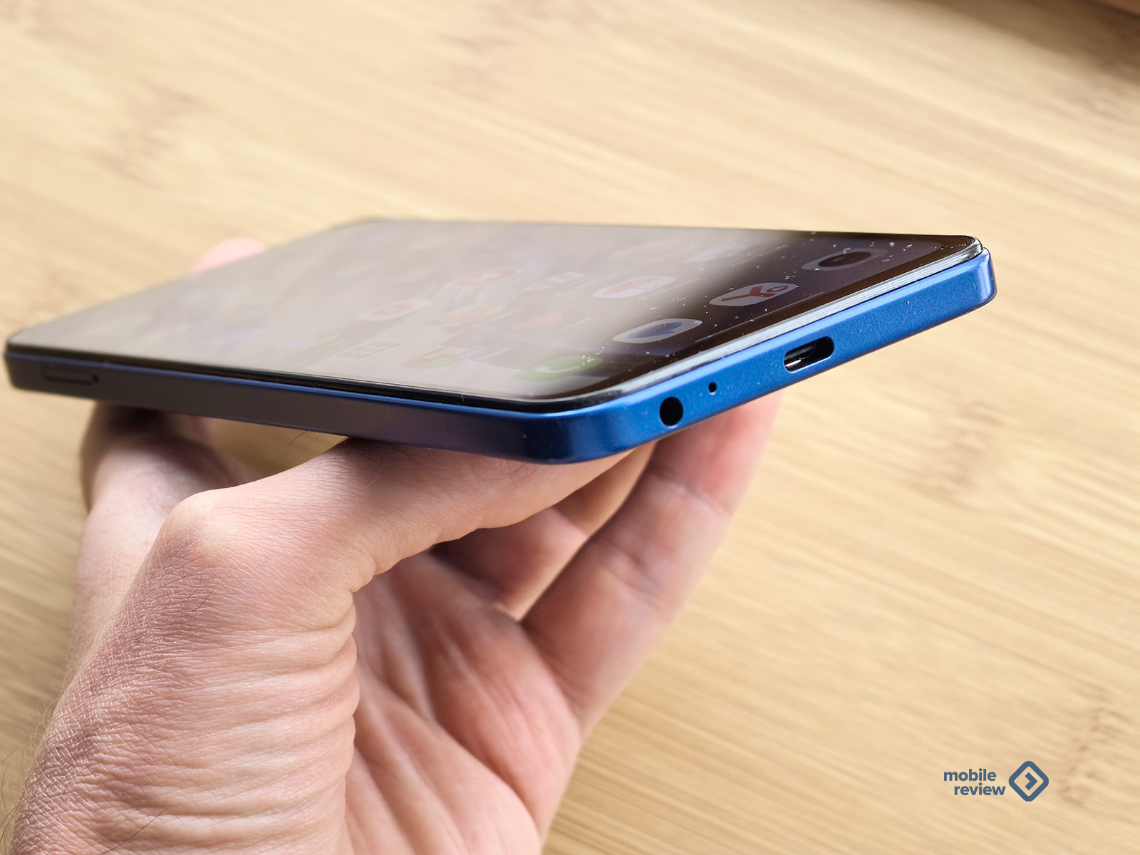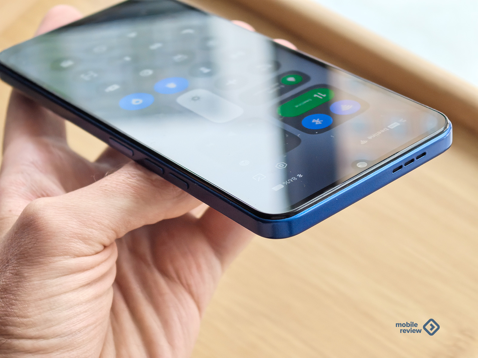 У меня на тесте смартфон насыщенного синего цвета. Выглядит очень хорошо. Визуально определить ценовую категорию устройства не получится. У смартфона дисплей 6.75 дюйма с заметными рамками, так что устройство получилось крупным. Плюс рамки плоские. Лучше подержать телефон в руках перед покупкой.