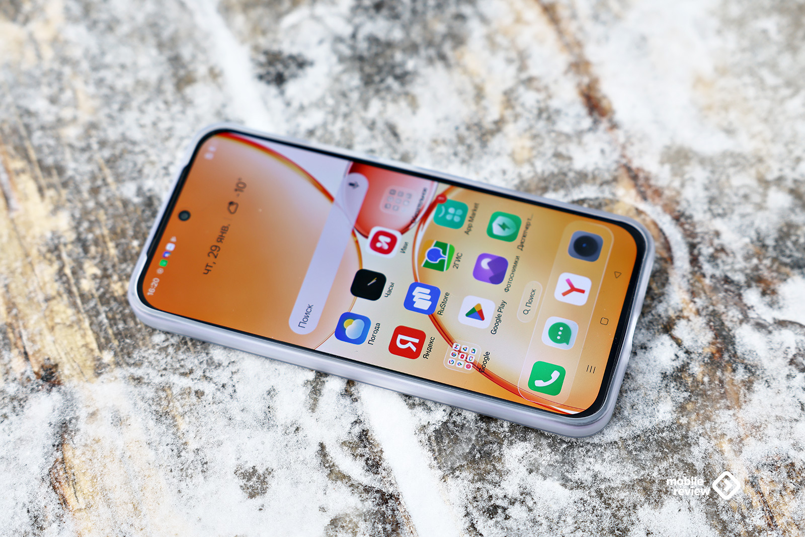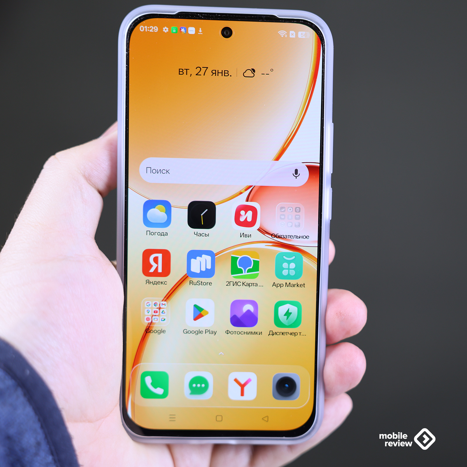 В комплект входит силиконовый чехол, у него ребристая спинка, за счет чего аппарат выглядит интересно.