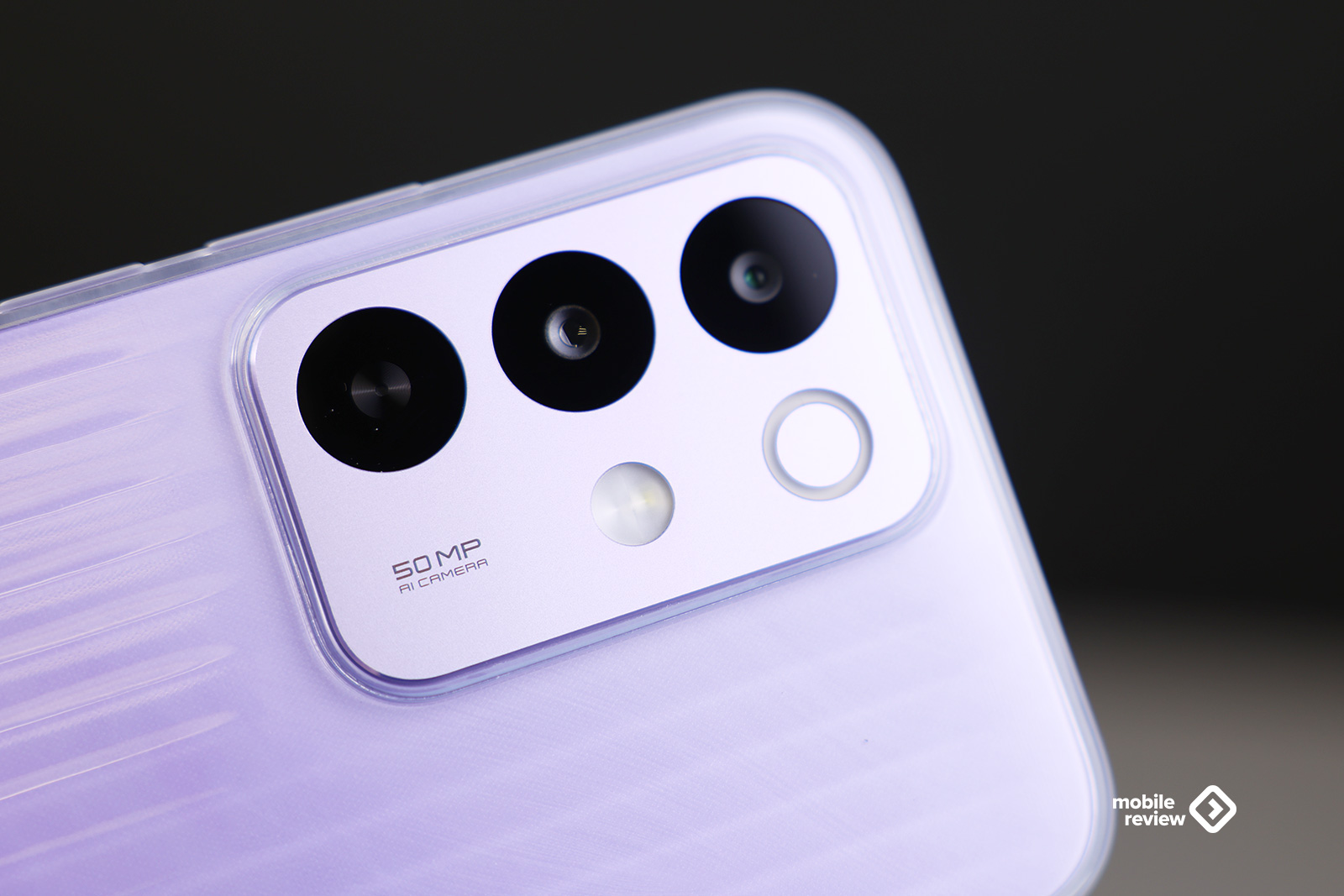Пластиковый корпус, задняя панель в фиолетовой расцветке имеет приятный рисунок.