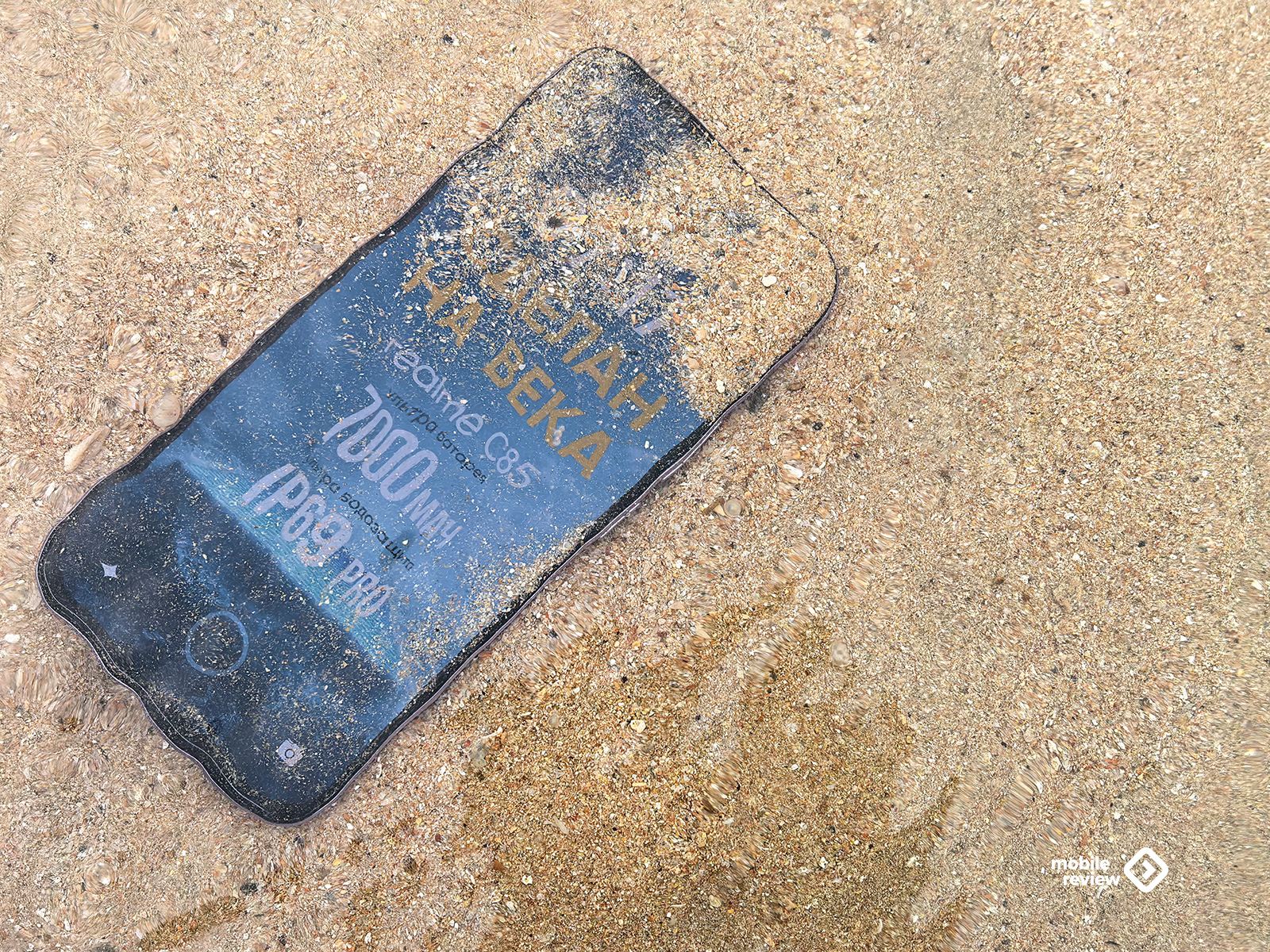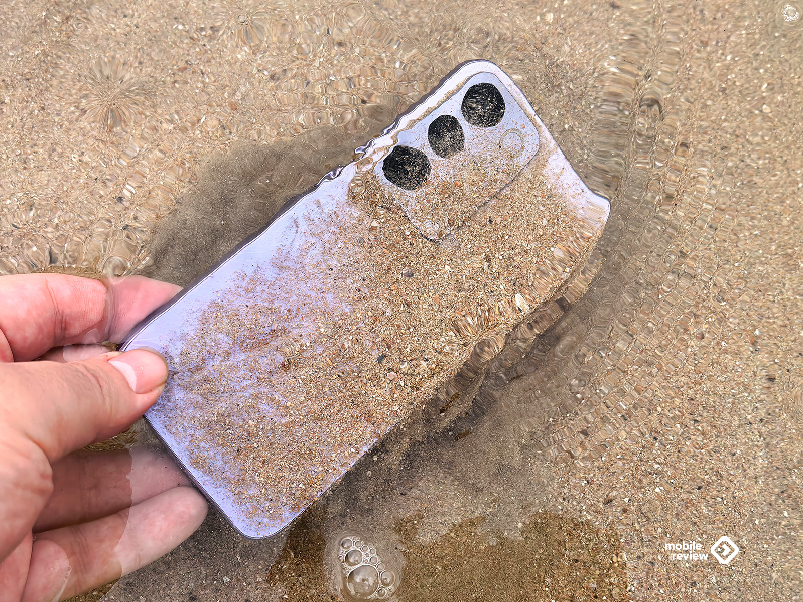 Мои испытания были намного проще, я утопил его в море (защита от соленой воды не заявлена). Посмотрел — все работает. Подумал, что имеет смысл пойти дальше и закопать аппарат в песке, чтобы проверить, что с ним будет через час. Сказано — сделано.