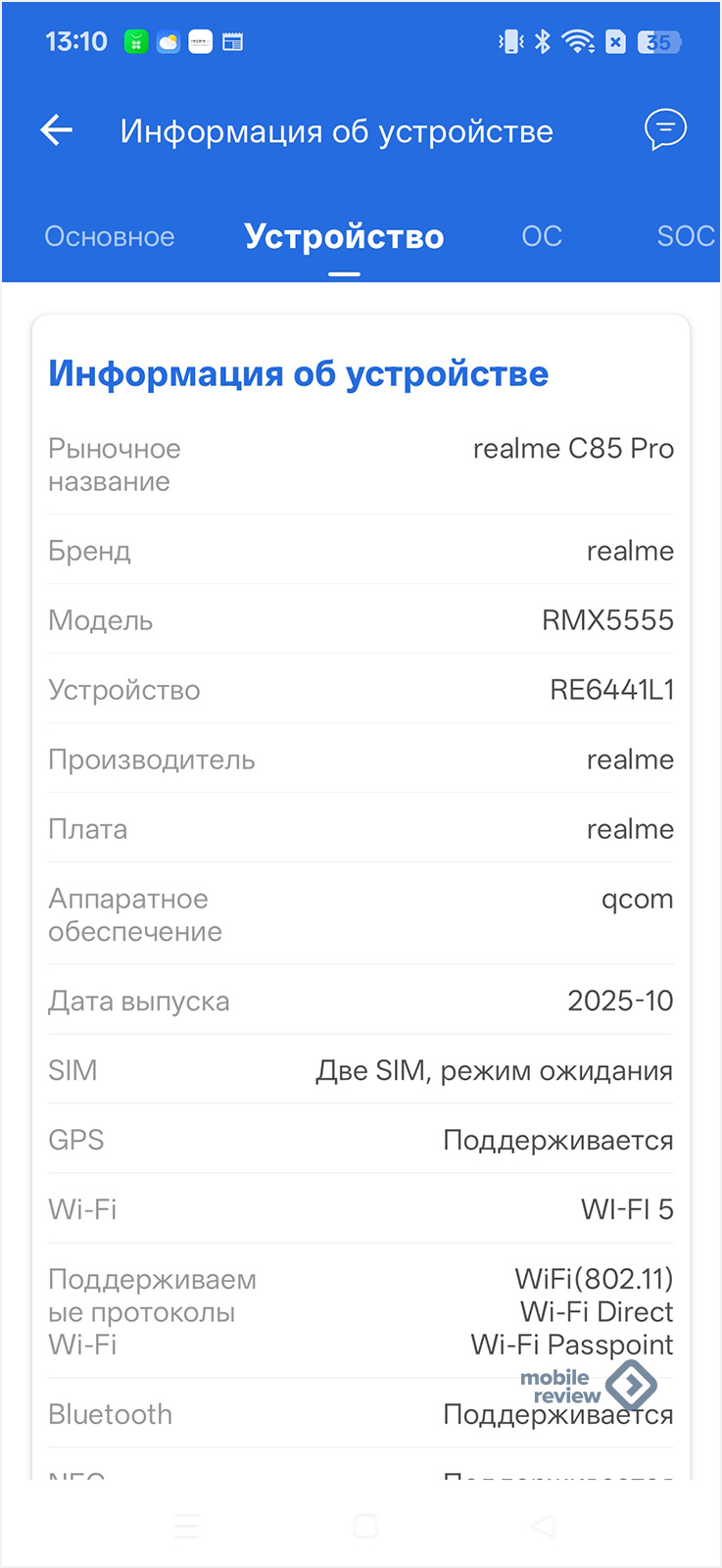 | Операционная система | Google Android 15, фирменная оболочка realme UI 6.0 |