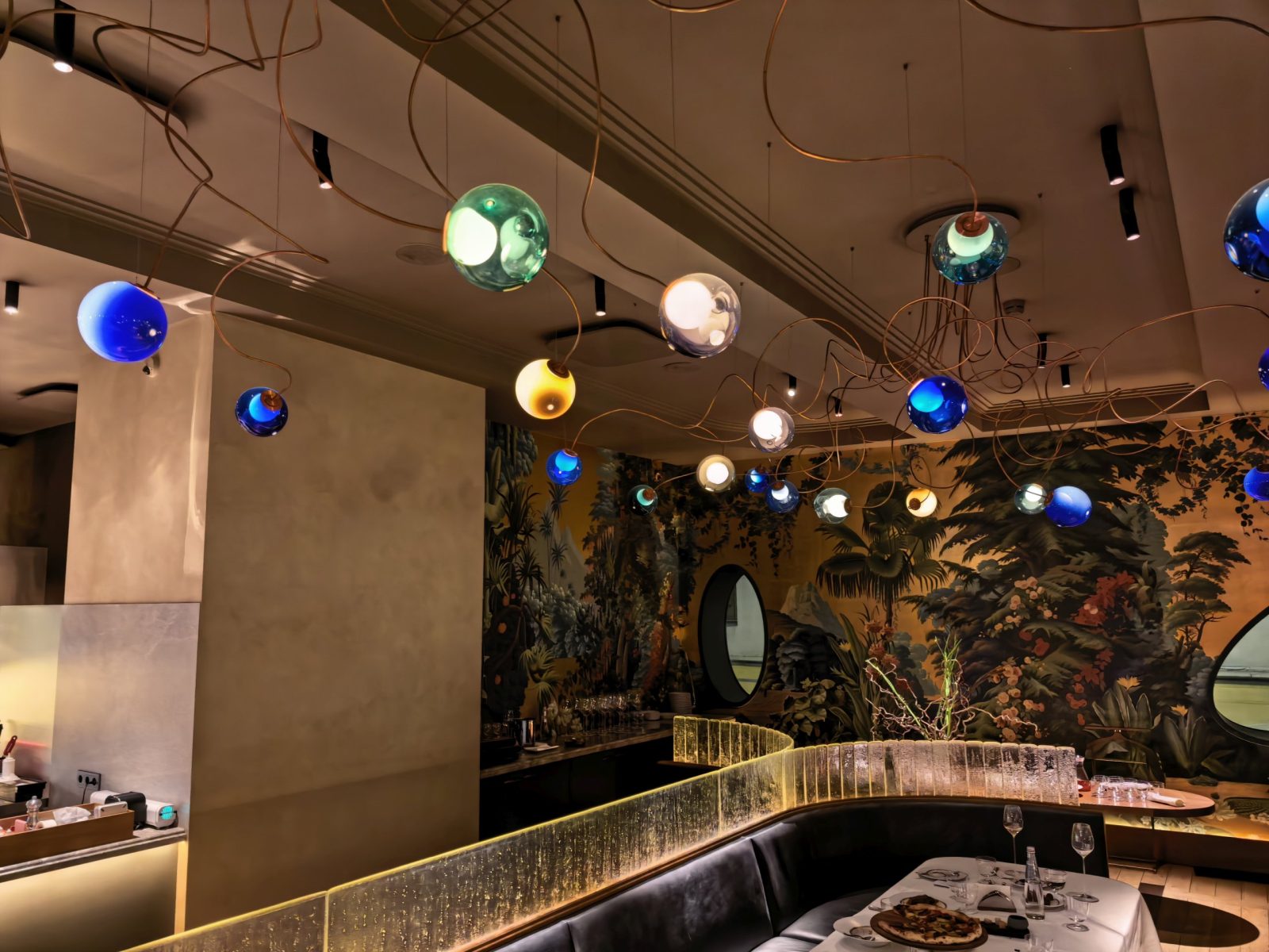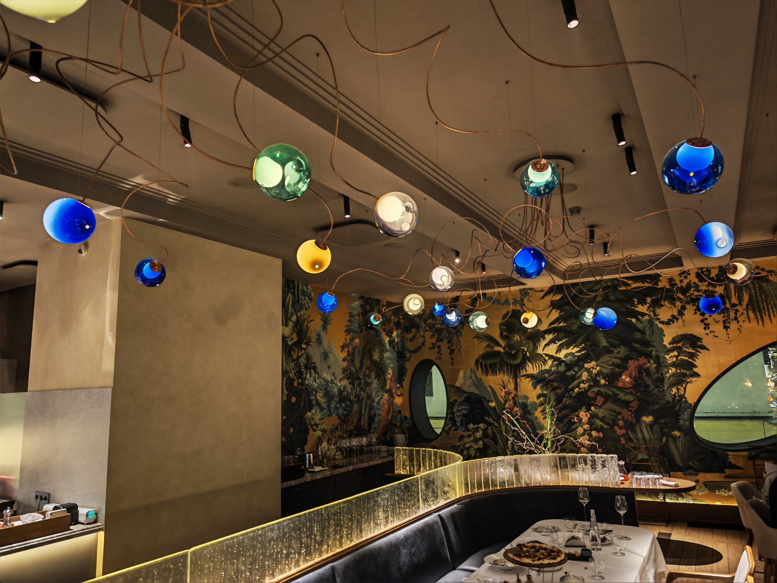 Снимок №10. Зал ресторана, разноцветные светильники на потолке