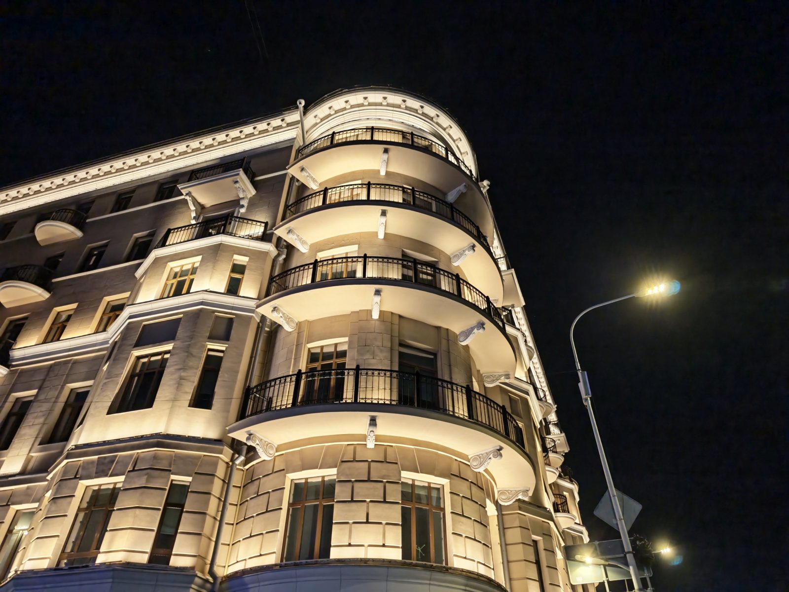 Снимок №12. Угол здания ночью, фонарь