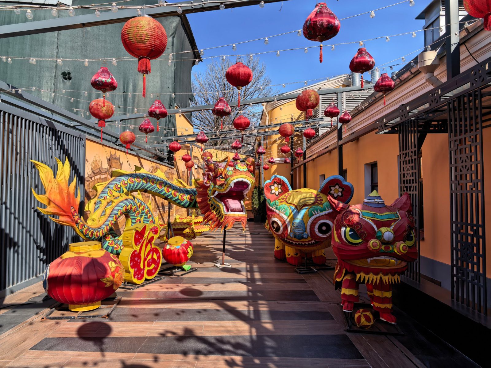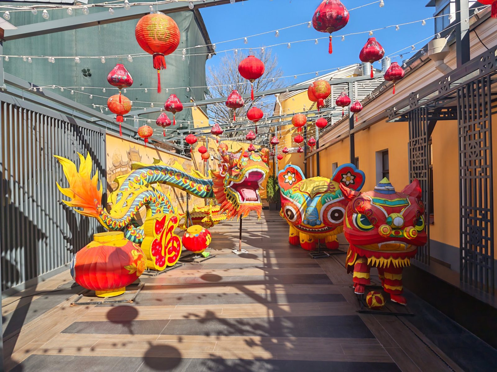 Снимок №10. Зал ресторана, разноцветные светильники на потолке