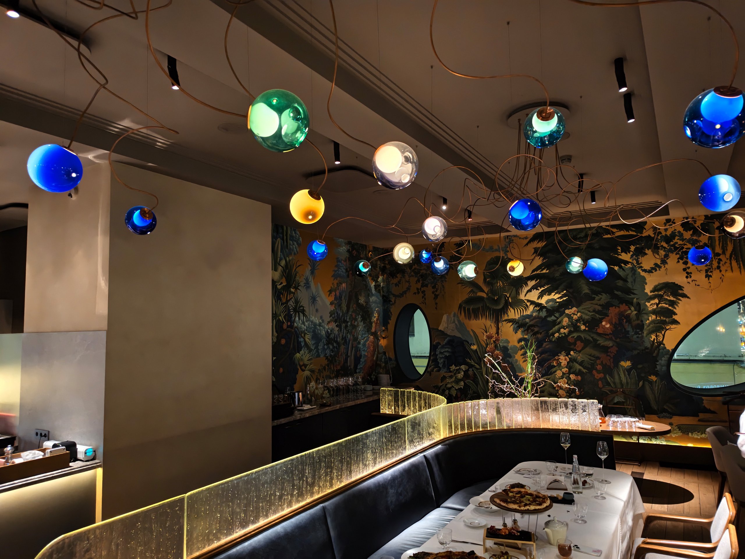 Снимок №10. Зал ресторана, разноцветные светильники на потолке
