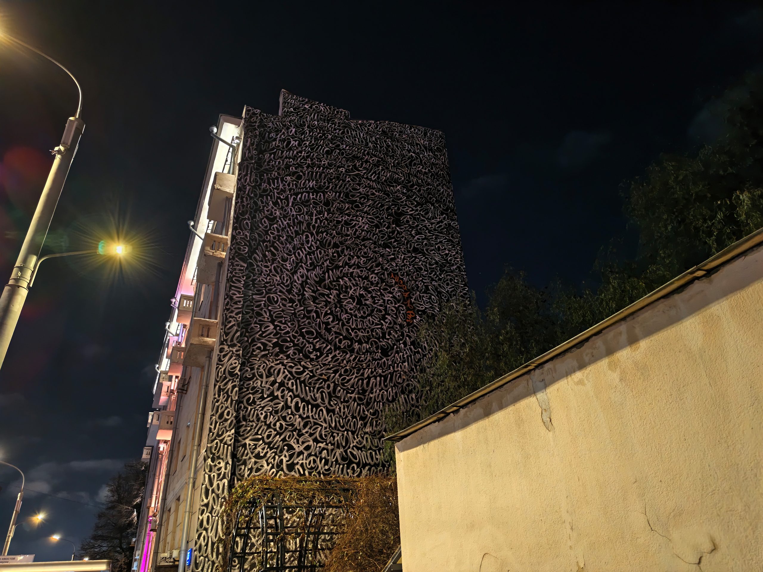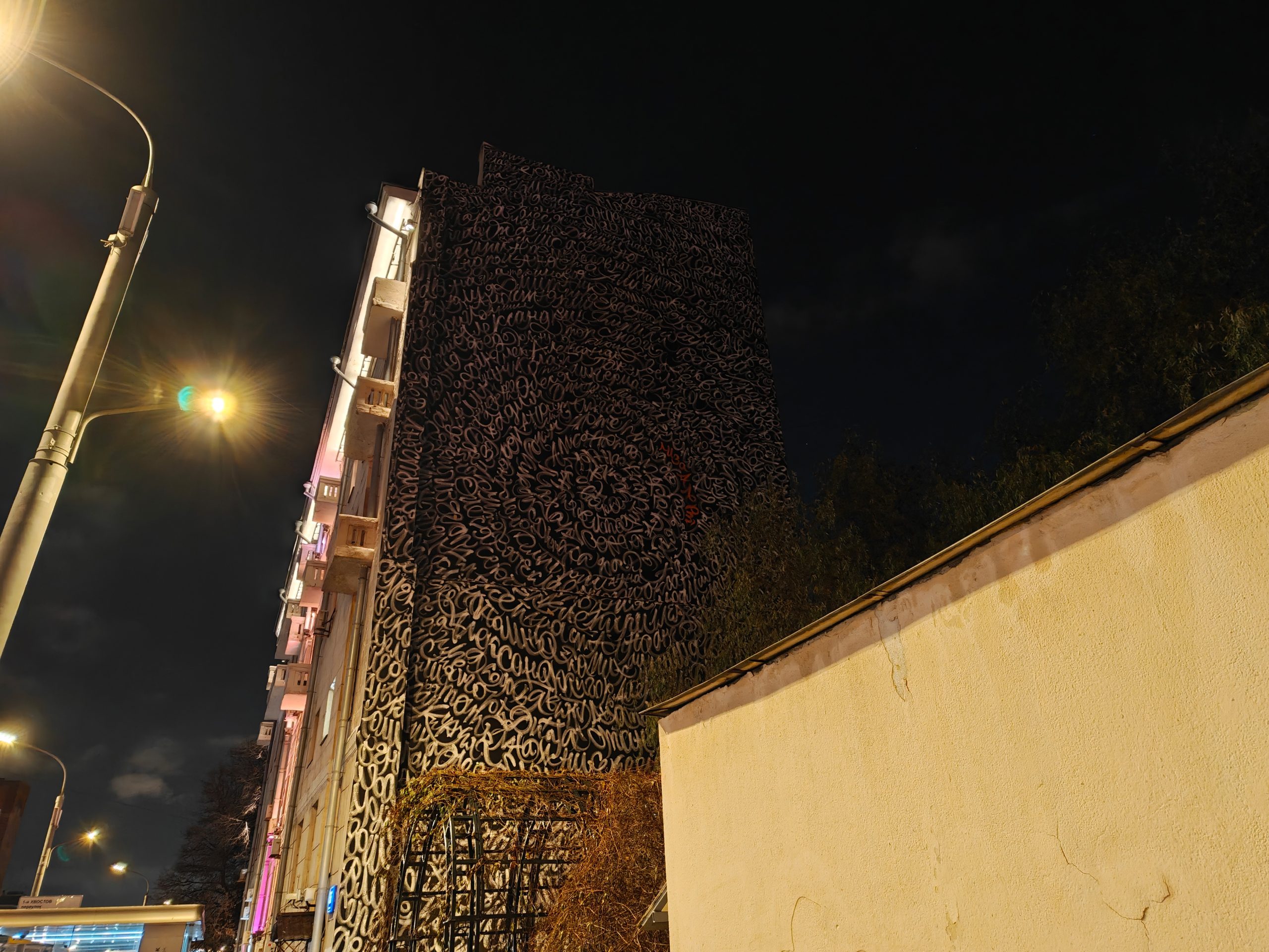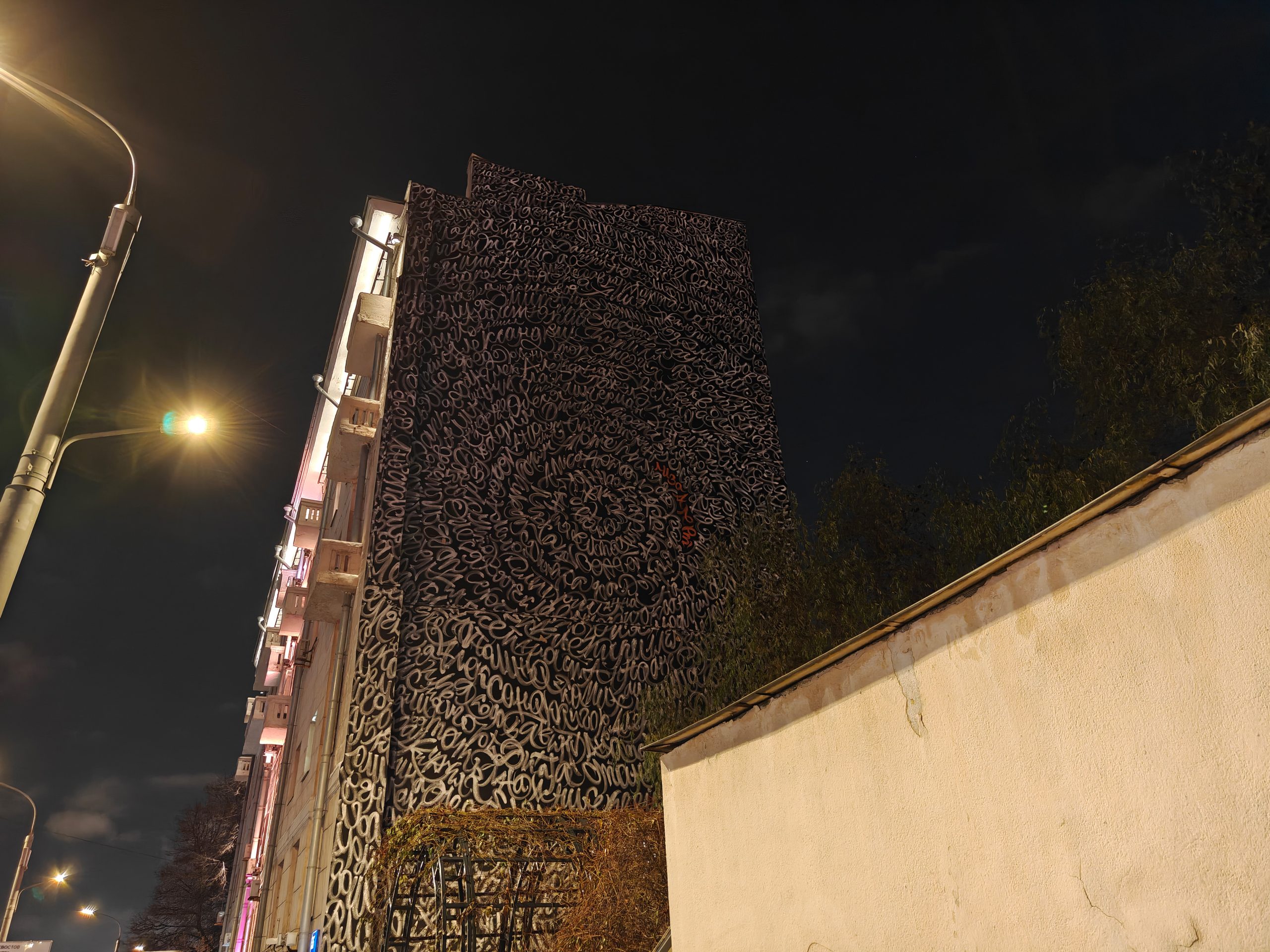 Снимок №14. Граффити на доме вечером