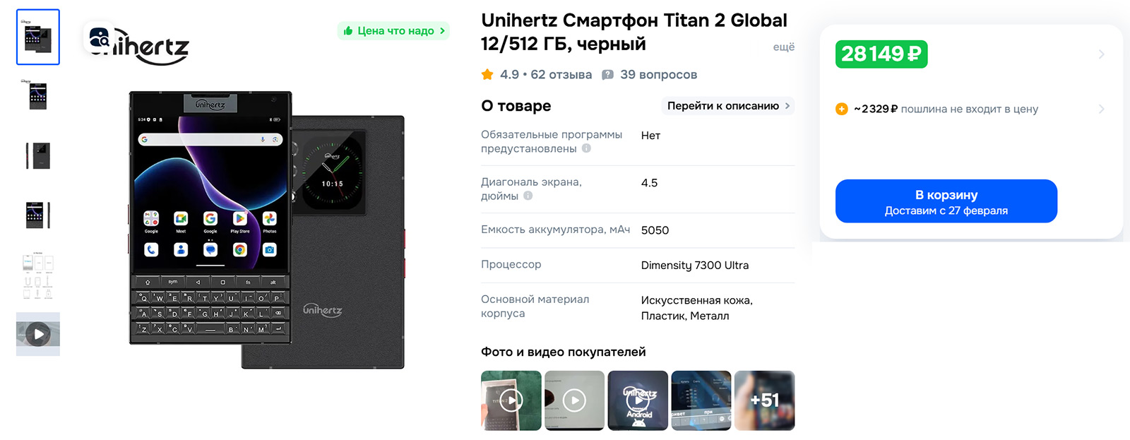 Если говорить о деньгах, то на маркетплейсах его можно найти примерно от 28 000 рублей, и по такой цене его часто продает сам производитель. Сумма, скажу прямо, не самая маленькая, но и не запредельная для эксперимента. Так что если вам очень хочется в прямом и переносном смысле прикоснуться к чему-то действительно необычному в нашем стандартизированном мире мобильников, думаю, это вполне адекватный вариант. Просто отдавайте себе отчет, что покупаете вы в первую очередь эмоции и тактильные ощущения, а не ультимативный инструмент для продуктивности.