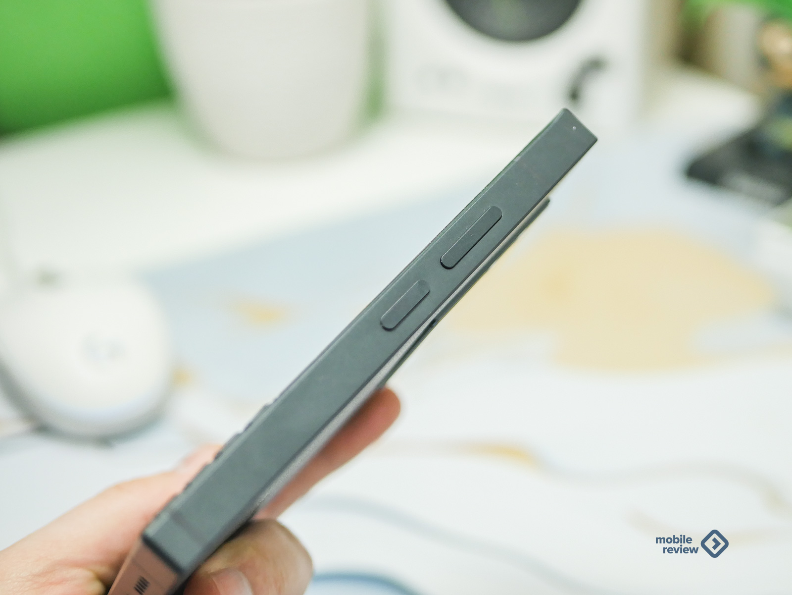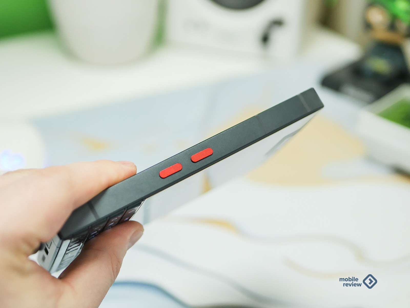 Боковины тоже не пустуют. Справа у нас почти утопленная в корпус кнопка питания и чуть выше — классическая качелька громкости. А вот левый бок явно для энтузиастов: тут красуются две отдельные механические кнопки, выделенные красным цветом. Производитель предлагает назначить на них любые функции.