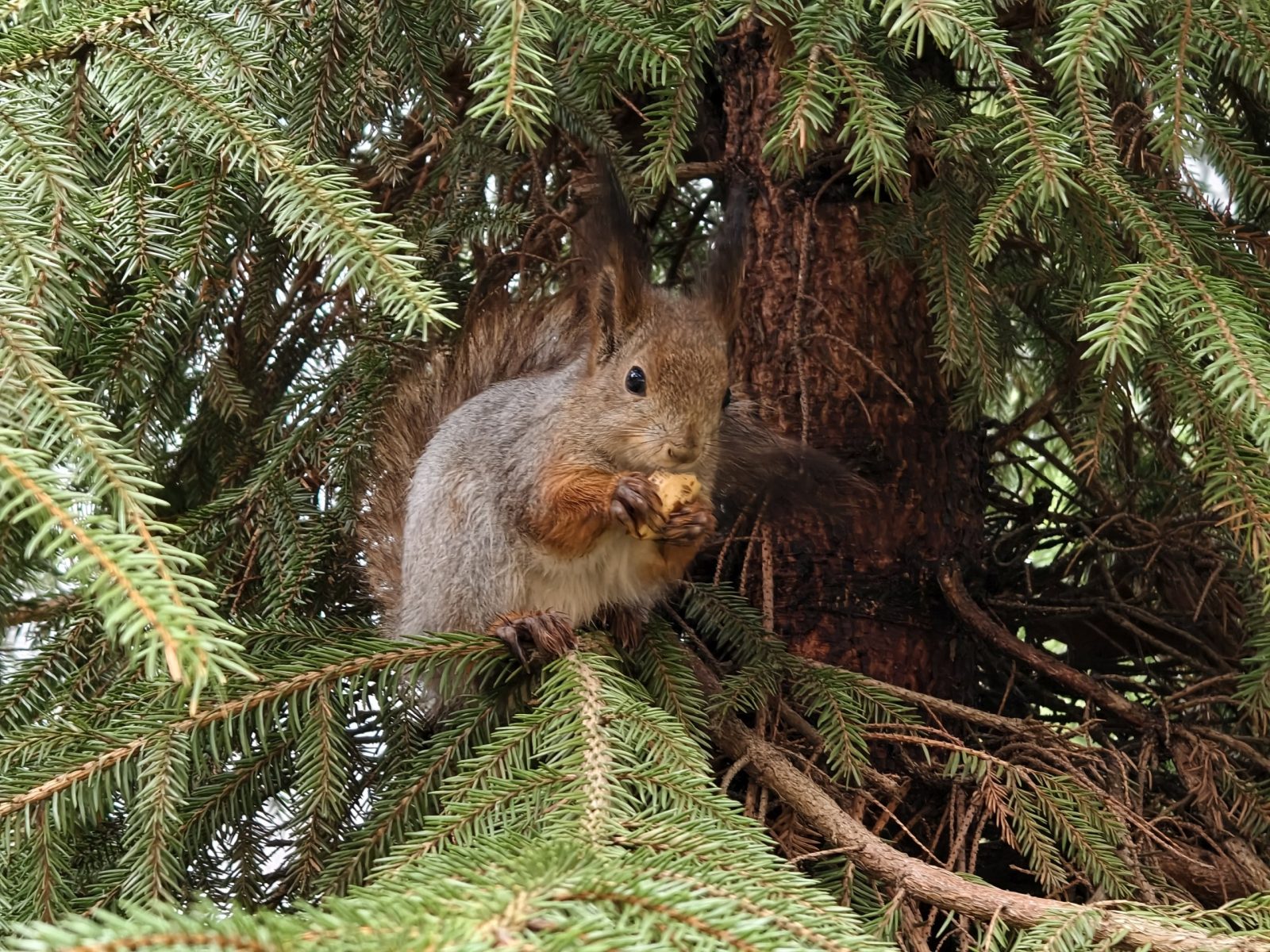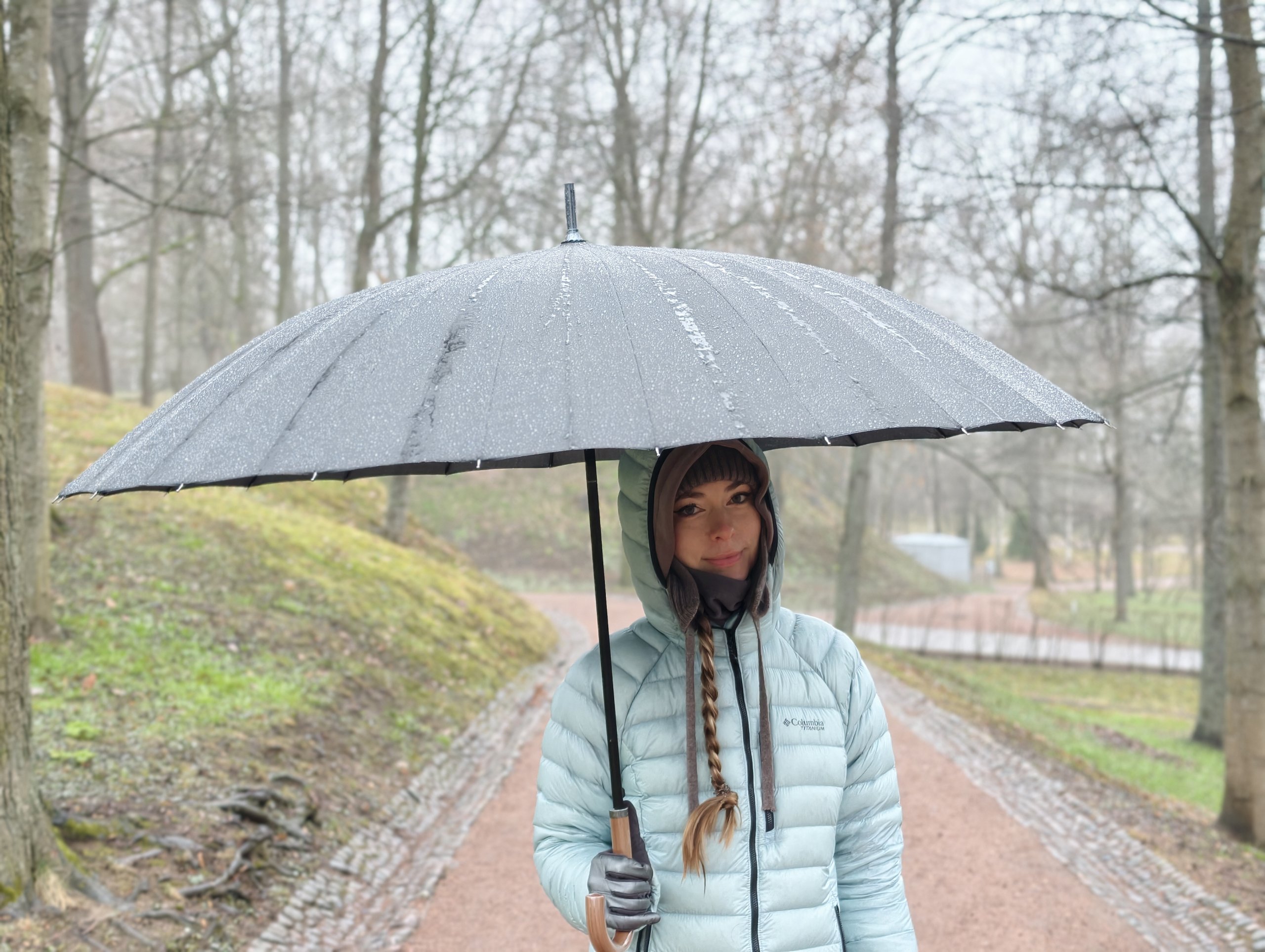 Оба смартфона не справились с черным зонтом. У vivo результат чуть лучше, но в целом оба снимка получились слегка белесыми. Обидно. Вживую капли дождя на черном куполе зонта смотрелись очень эффектно. Аналогичная ситуация с белкой. У vivo результат чуть лучше, так как алгоритмы раскрасили фото.