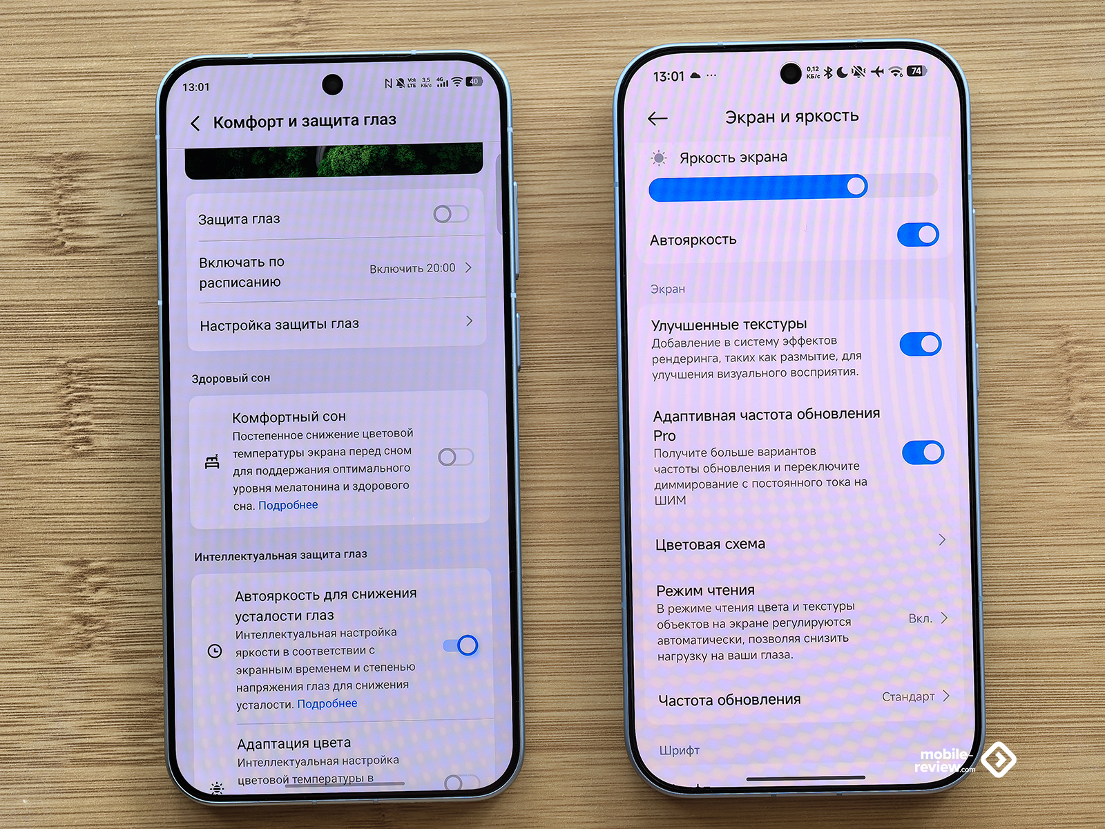 У обоих смартфонов в настройках есть опции по защите зрения. Но у vivo X300 настроек гораздо больше: