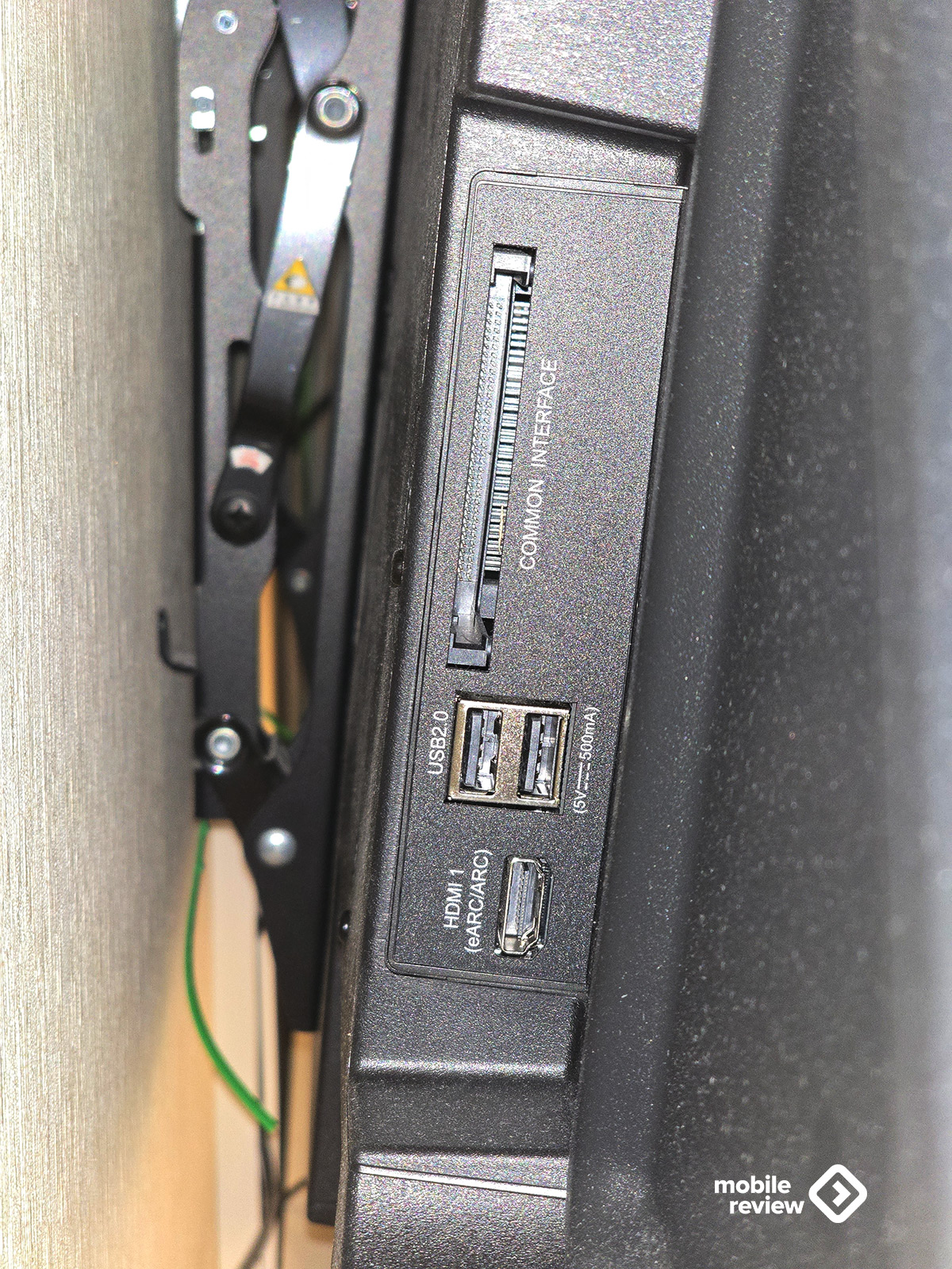 На задней панели, с левой стороны, все продумано чуть лучше. Здесь находятся два USB-порта версии 2.0 и один HDMI с поддержкой eARC/ARC. Чуть выше — слот Common Interface (он же CI), куда можно установить CAM-модуль со смарт-картой.