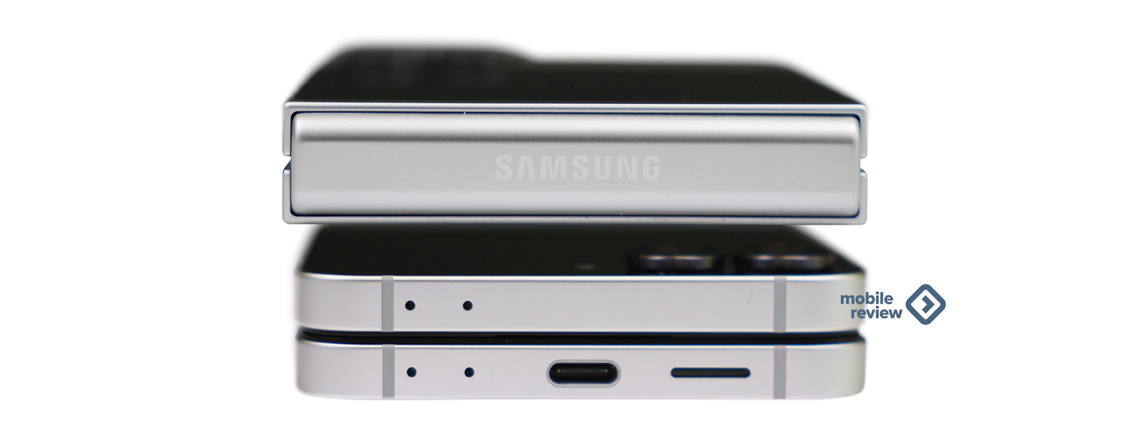 На нижнем торце — разъем USB Type C, тут же два микрофона, еще два микрофона на верхнем торце (в раскрытом состоянии, в закрытом все они внизу). В аппарате два динамика, но они работают в раскрытом состоянии (второй динамик разговорный, он направлен немного иначе, что дает непривычное звучание стереопары на высокой громкости). Громкость динамиков хорошая, вы слышите звонок в любых условиях.