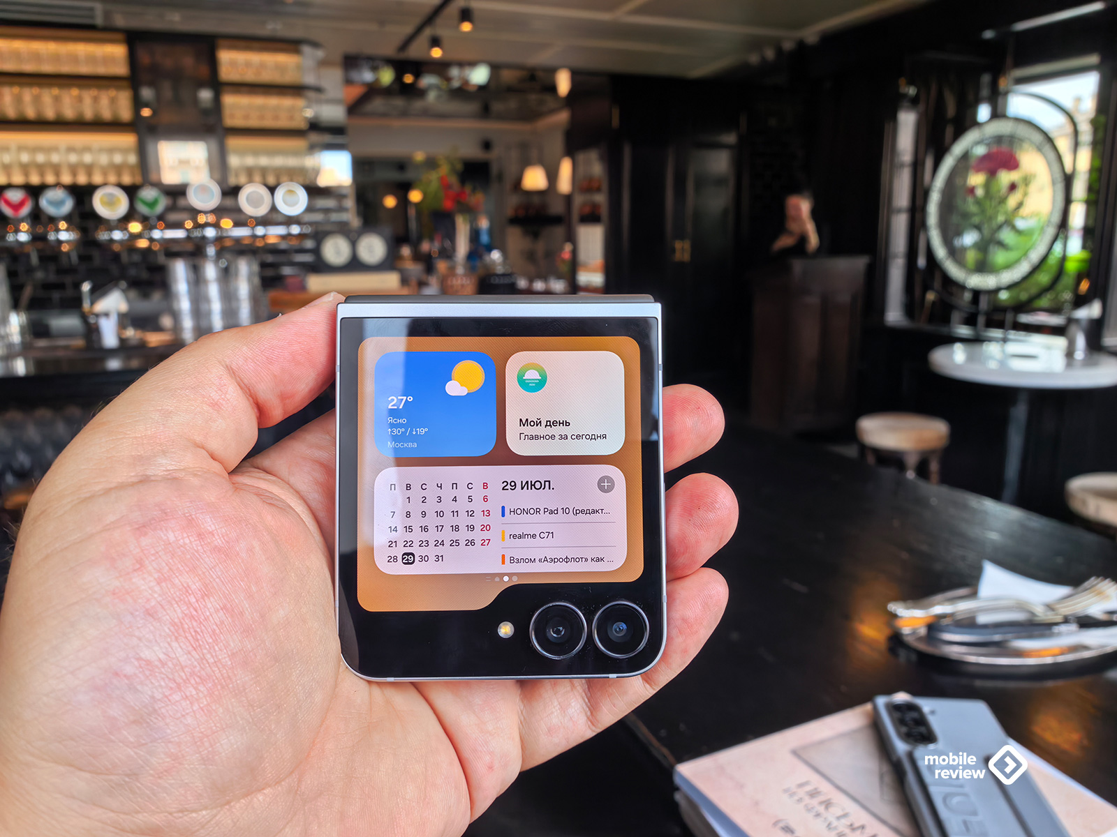 Гибкий экран дает дополнительные возможности, например, вы можете согнуть смартфон пополам и поставить на ровную поверхность, чтобы с кем-то поговорить по видеосвязи. Можно в таком состоянии что-то набирать, дисплей будет под углом, а клавиатура расположится в нижней части экрана. Сценарии использования полураскрытого Flip различны, но главное, что не нужно таскать подставку, вы можете выходить на видеосвязь откуда угодно, для меня это самый важный момент.