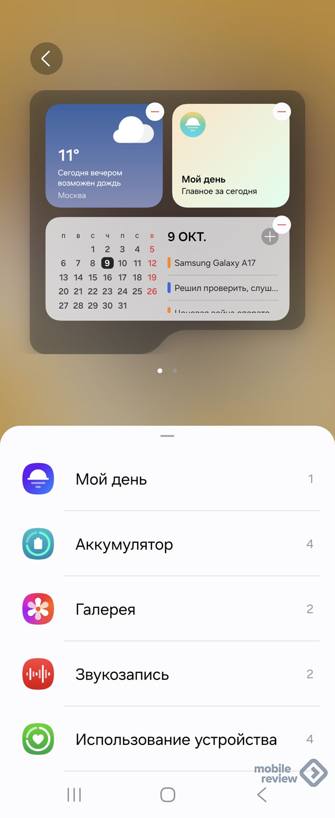 В режиме ожидания вы можете разблокировать экран (датчик отпечатка, лицом или нарисовав графический ключ), листая вправо, увидите виджеты, которые ставите сами. Либо можете просто щипком увидеть все виджеты.