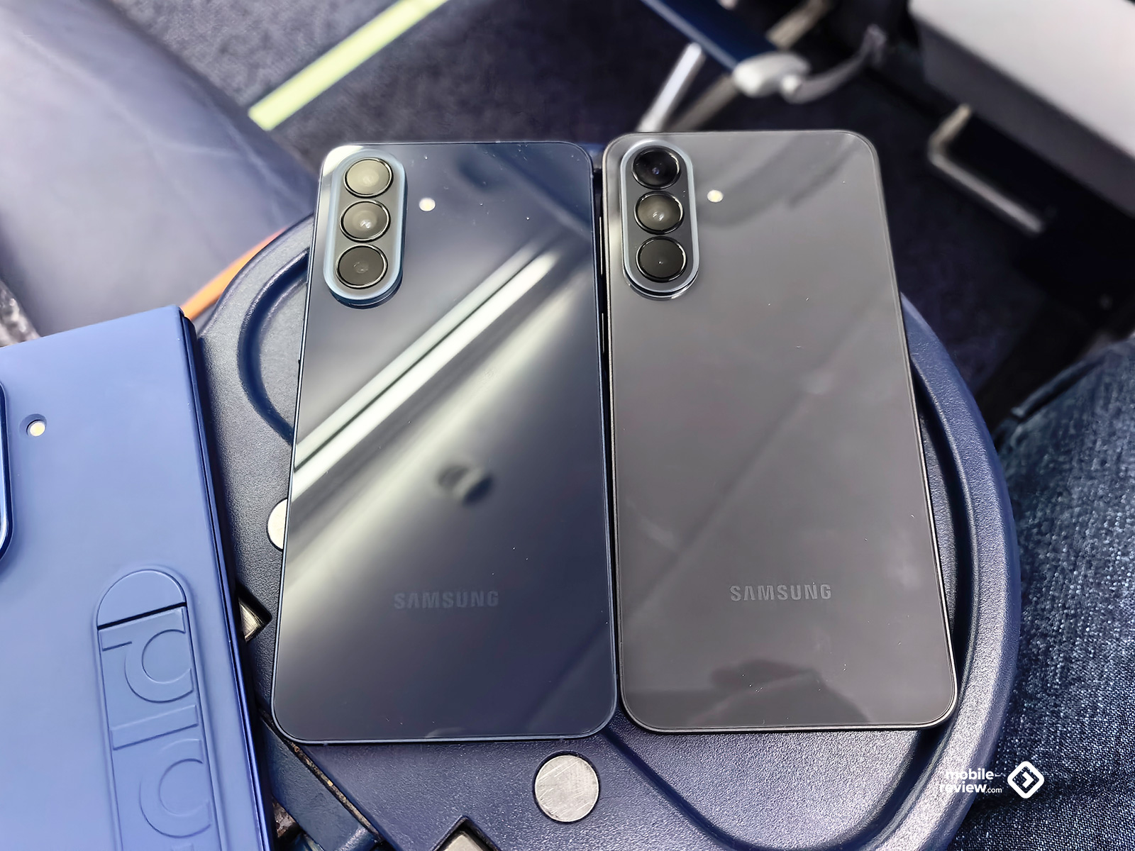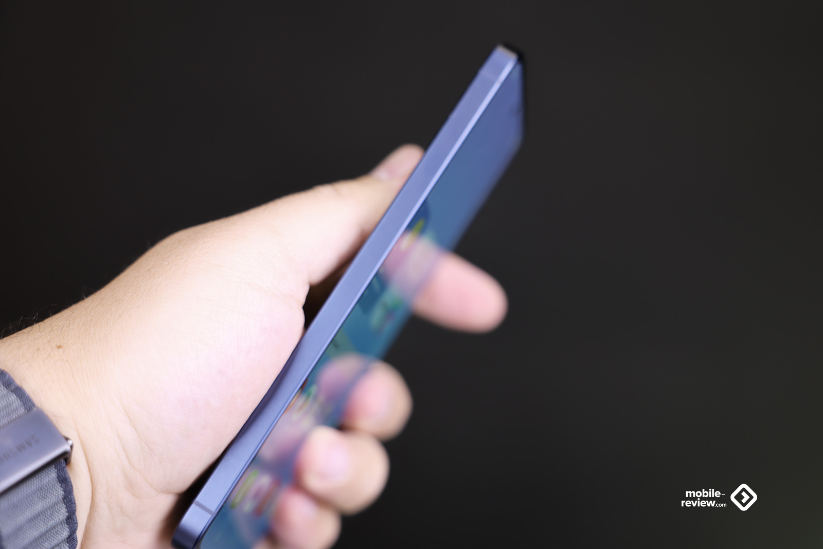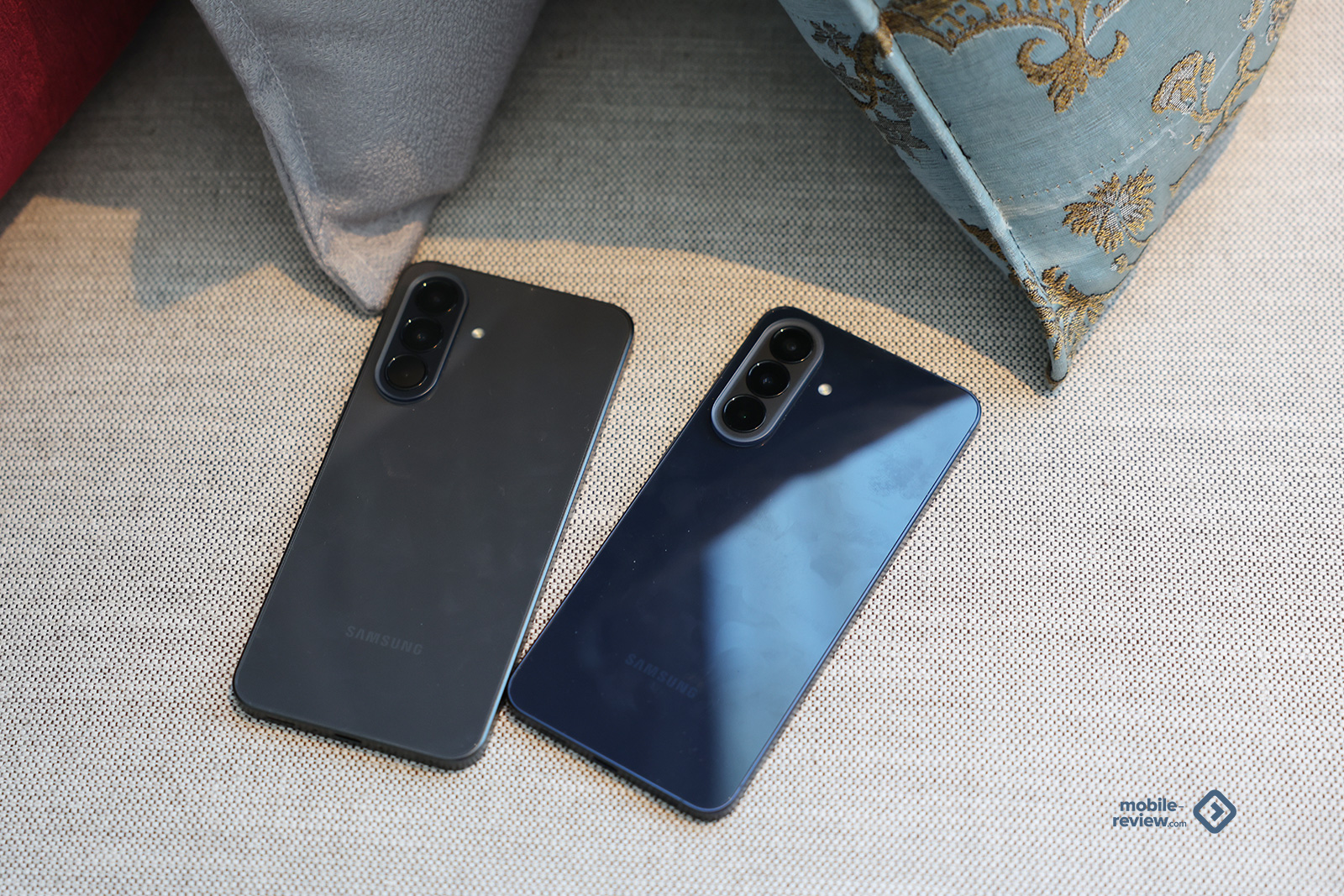 Боковая грань матовая, в цвет корпуса, а вот стекло задней панели маркое, поскольку темное. Плюс в нем отражается практически все что угодно, этим А-серия отличается от флагманов S-серии, они матовые. Такое ощущение, что эту разницу создавали осознанно, чтобы вы не перепутали один аппарат с другим, посмотрите на сравнение с S26+.