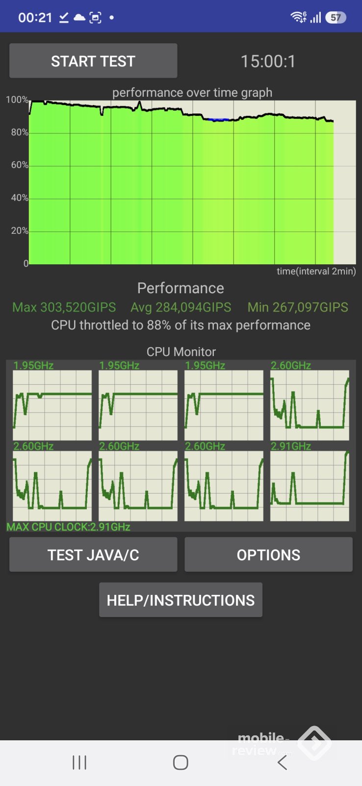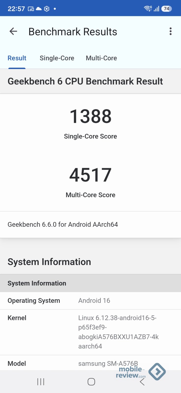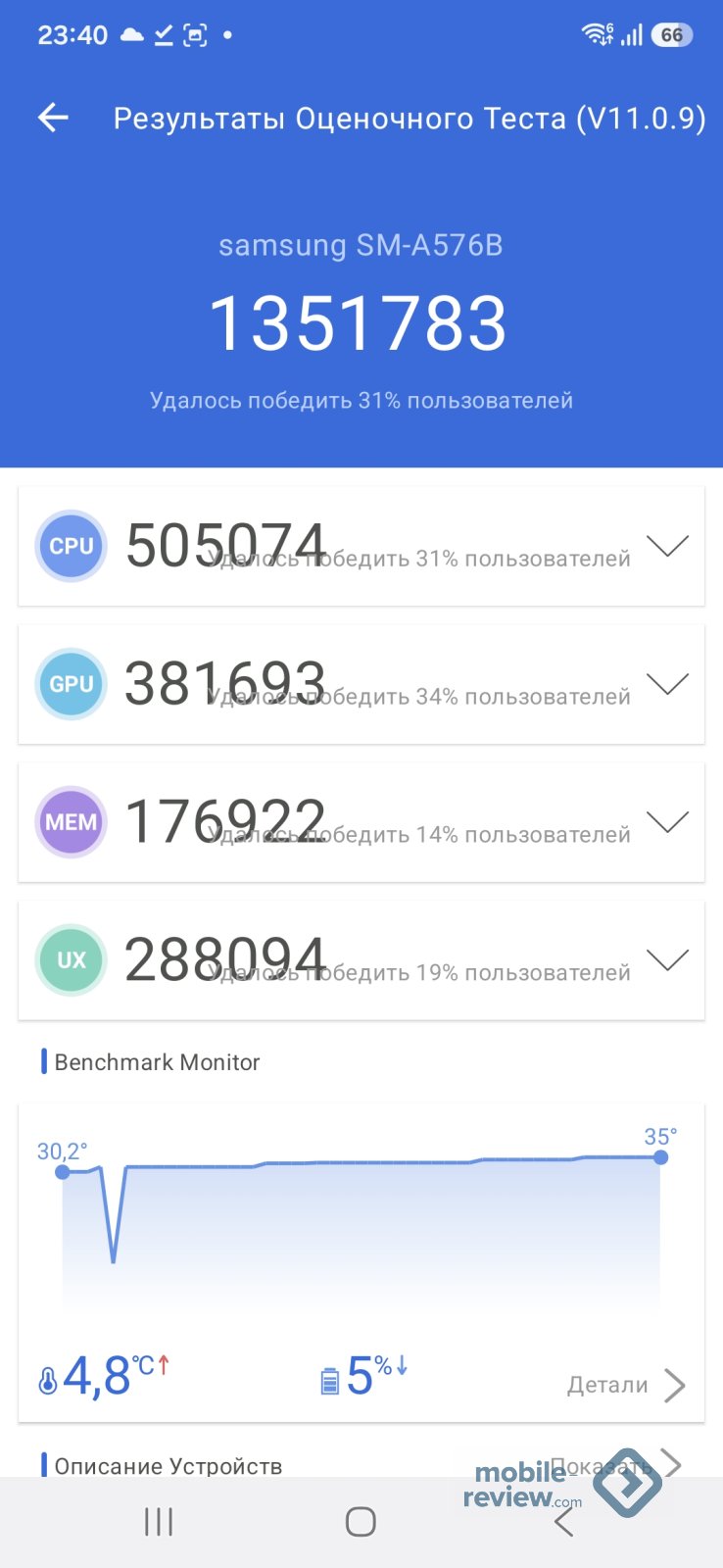 Чипсет Exynos 1680 (4 нм), упор сделан на эффективность работы и теплоотвод, как результат, мы не видим троттлинга.