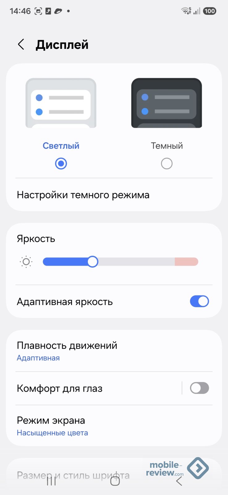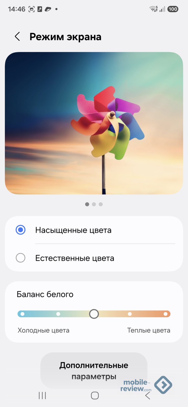 Настройки дисплея типичны, тут цветовая температура, чувствительность экрана, фильтр синего и многое другое.